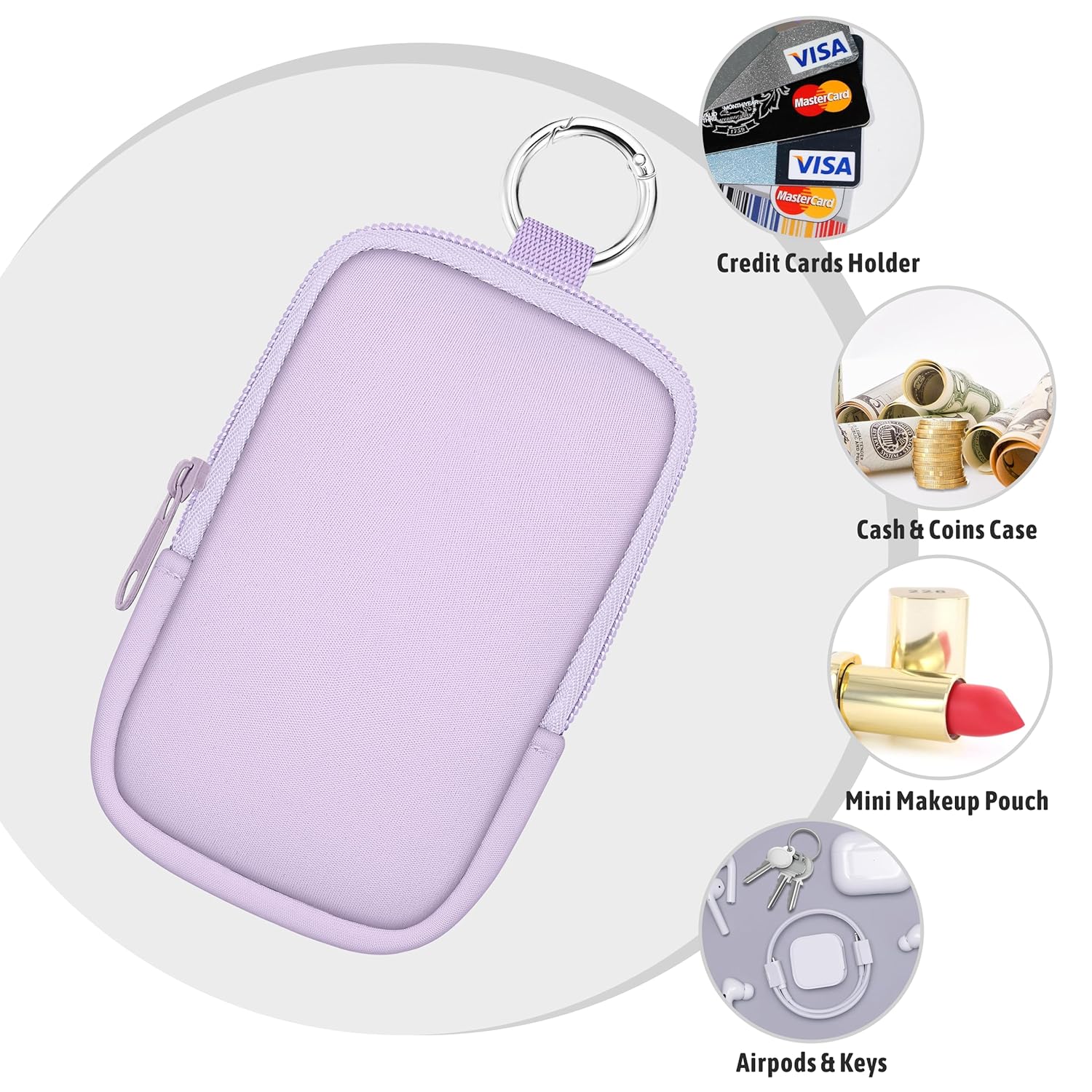 - Versatile Design: Not only a cute hand sanitizer holder, but also a nice organizer for credit cards, airpods, change, lipstick, lip balm, small pillboxes, car keys, and other small items. Good for outings, workouts, travel and daily life, keeping essentials organized and separate from other belongings