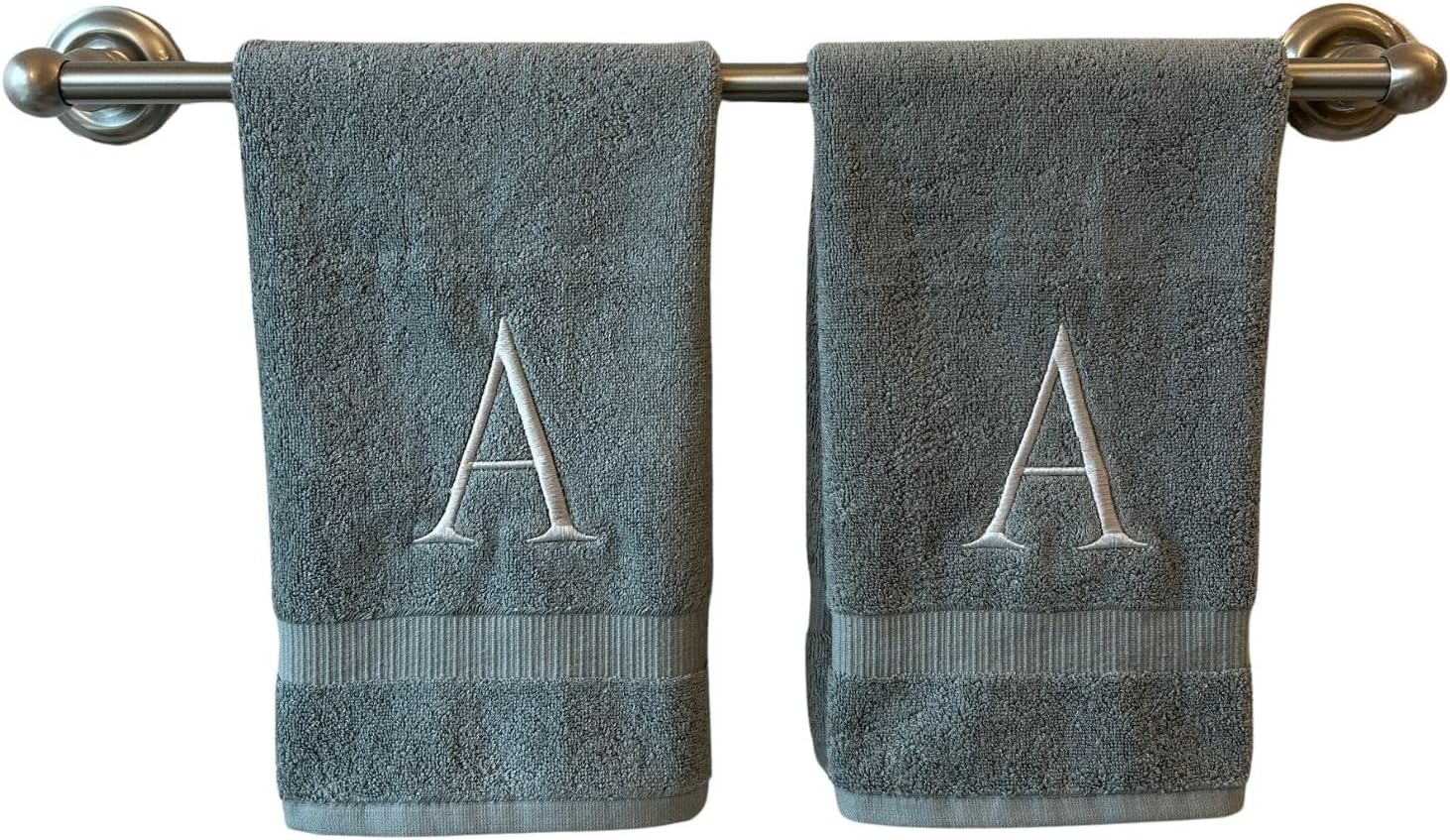 Gray Initial Hand Towel for Bathroom - Monogrammed Luxury Hotel Quality Decorative Embroidered Towel for Powder Room, Spa - GOTS Organic Certified - Set of 2 Silver Letter A