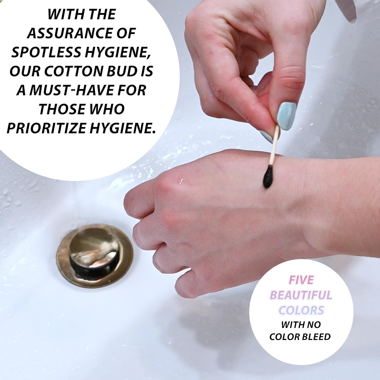 - Vibrant Multi-Color Swabs: These cotton swabs come in a five beautiful colors, adding a touch of elegance to your daily routine. Perfect for clean beauty enthusiasts who seek precision for makeup application or ear swabs. perfect for beauty, personal care, use to apply, clean, health, blend, touch up, remove beauty products. Super versatile. Healthy skin. Happy skin.