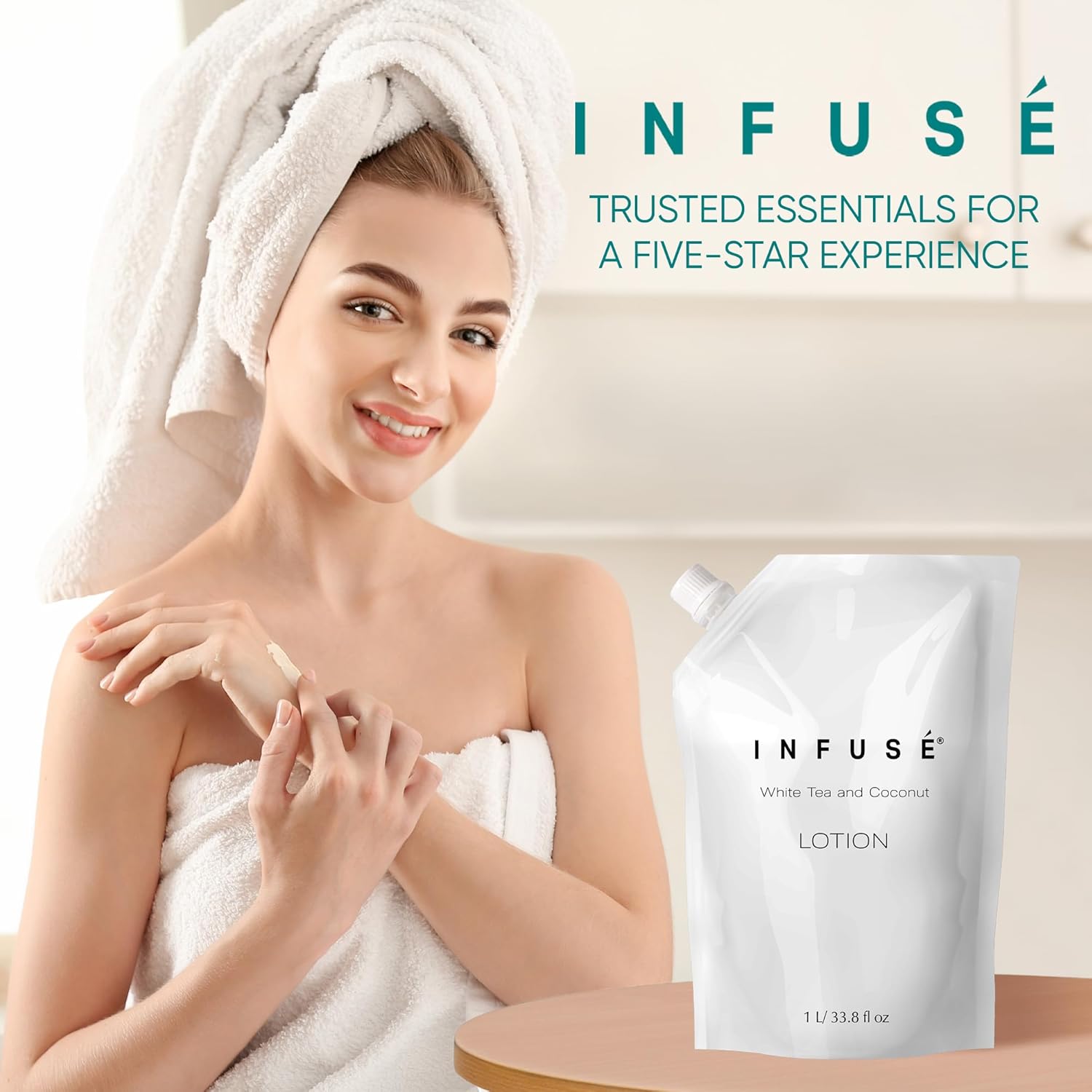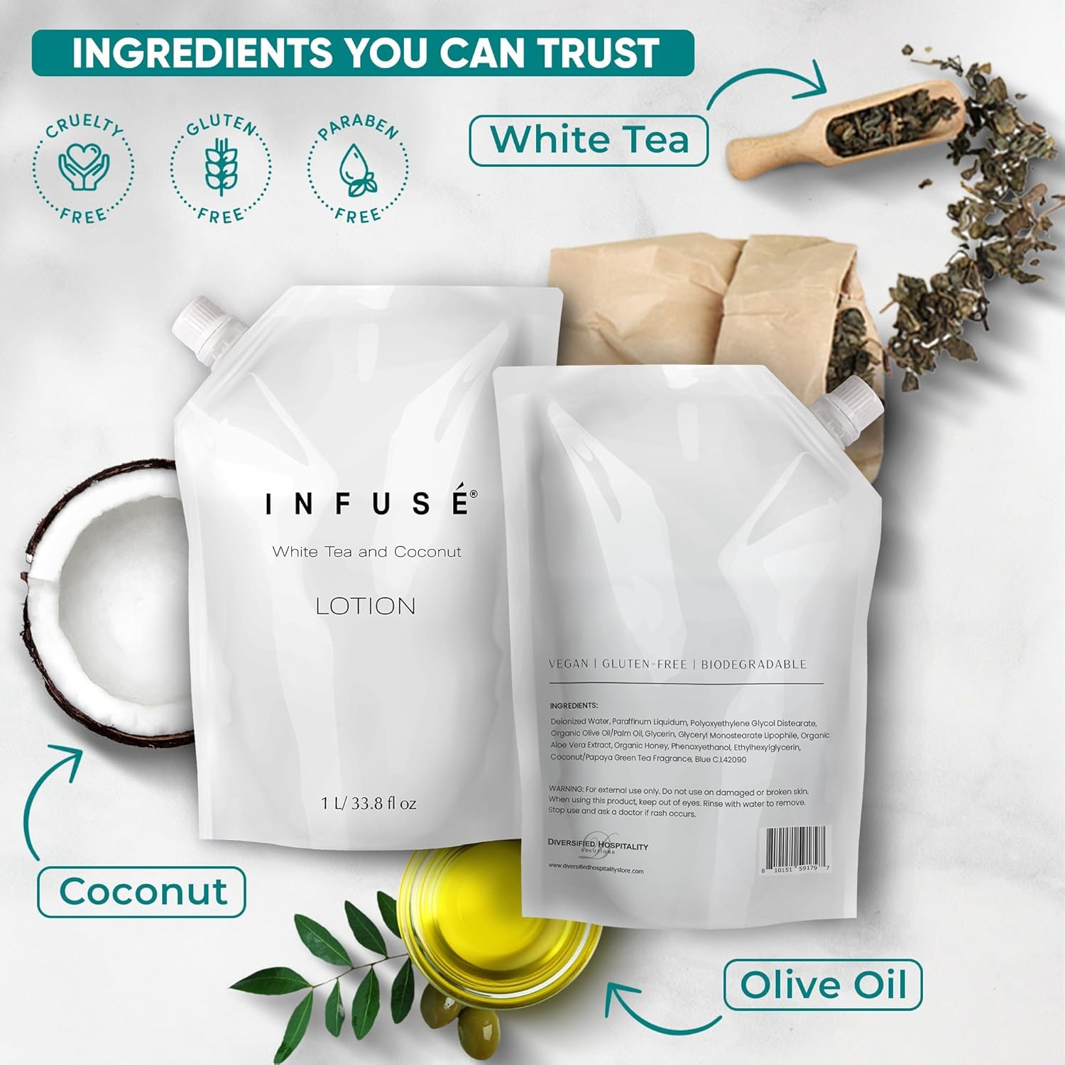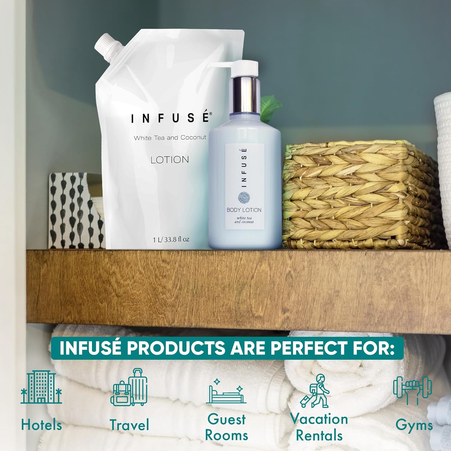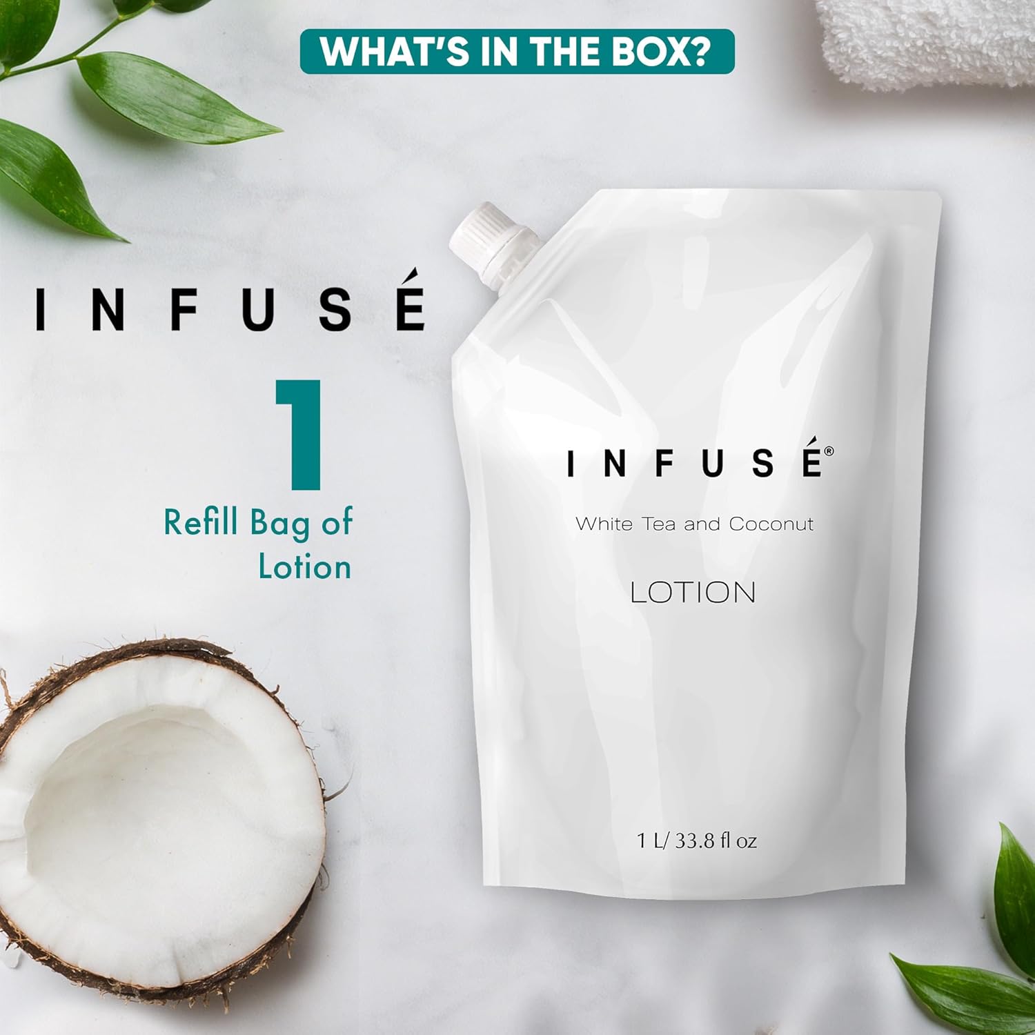 • HOTEL-QUALITY, LUXURIOUS AMENITIES: Enhance your guest experience with the Infuse White Tea and Coconut in a convenient 1-Liter Refill Bag, designed to refill wall-mounted and stand-alone dispensers. Enriched with white tea, coconut, organic aloe, and olive oil, this gentle, daily-use formula suits sensitive skin and hair. Ideal for hotels, vacation rentals, guest bathrooms, and homes, these premium amenities add sophistication and functionality to any hospitality space.