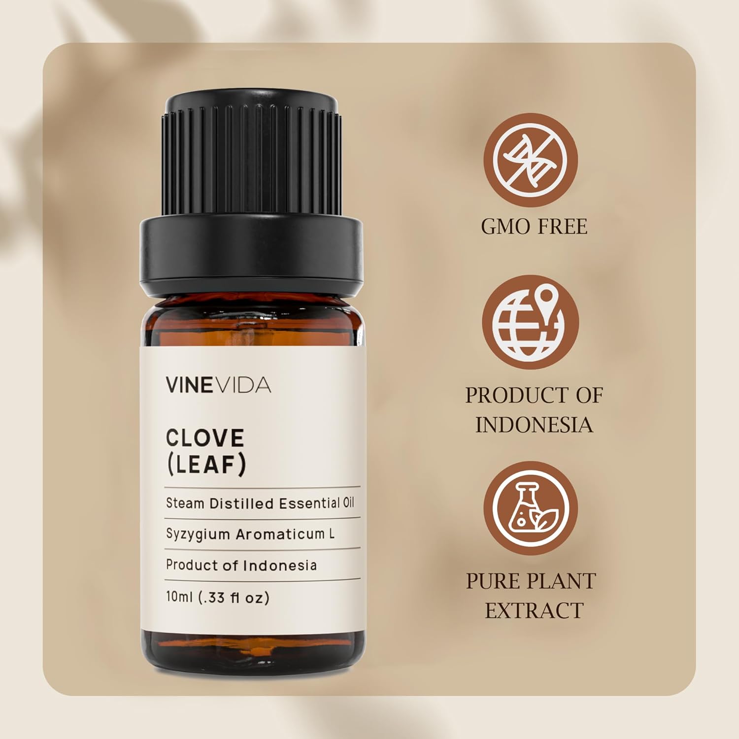 VINEVIDA Clove Essential Oil - 10 mL Undiluted Leaf Oil - DIY Candle Scents - Safe for Soap Making