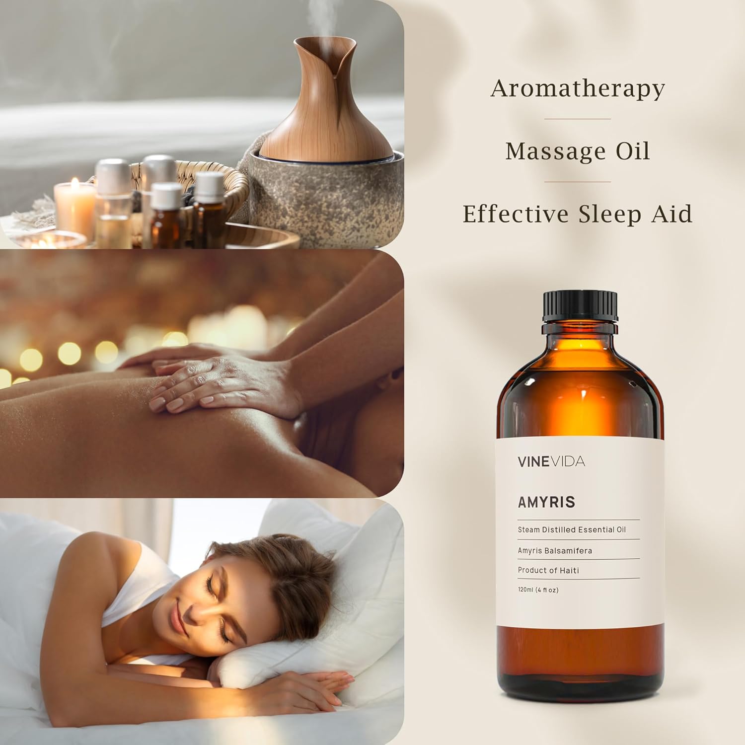VINEVIDA Amyris Essential Oil 4 oz - Undiluted, DIY Candle Scents for Candlemaking - Bulk, Safe for Skin