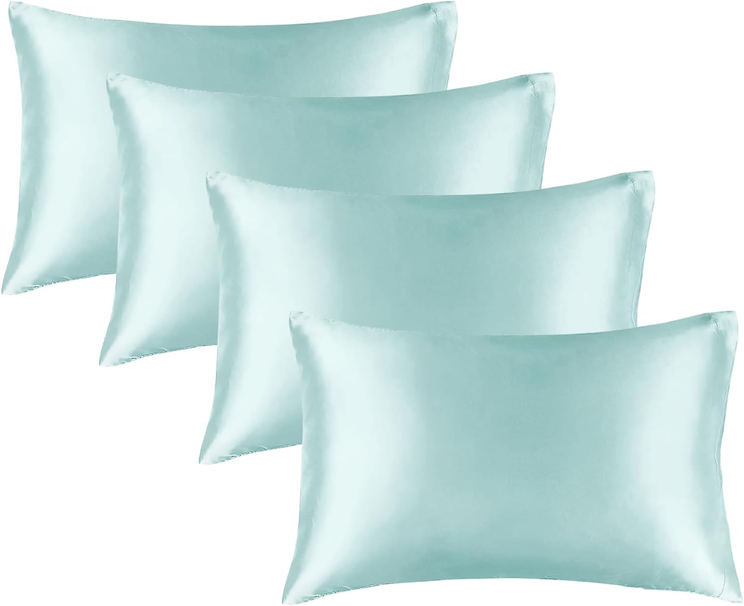 BEDELITE Satin Pillowcase for Hair and Skin, Super Soft Similar to Silk Pillow Cases 4 Pack with Envelope Closure, Cooling Pillowcases for Women Men (20"x30" Queen Size, Blue Grey)