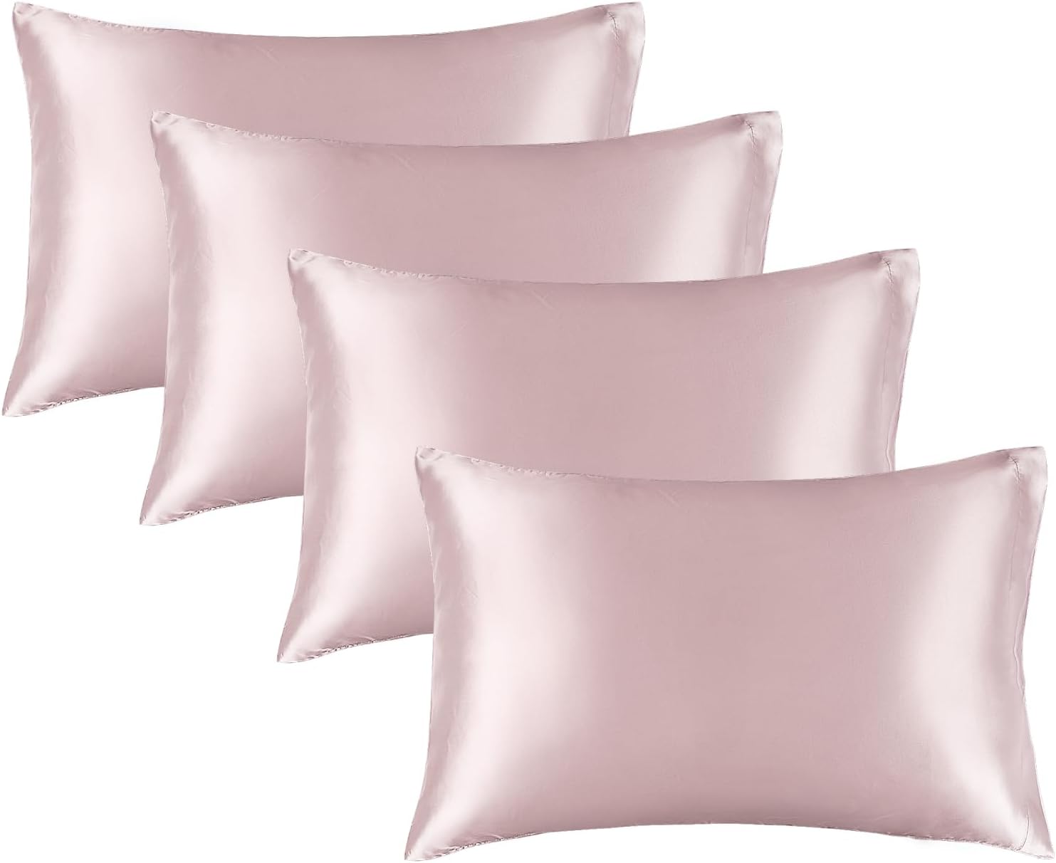BEDELITE Satin Pillowcase for Hair and Skin, Super Soft Similar to Silk Pillow Cases 4 Pack with Envelope Closure, Cooling Pillowcases for Women Men (20"x36" King Size, Lotus Pink)