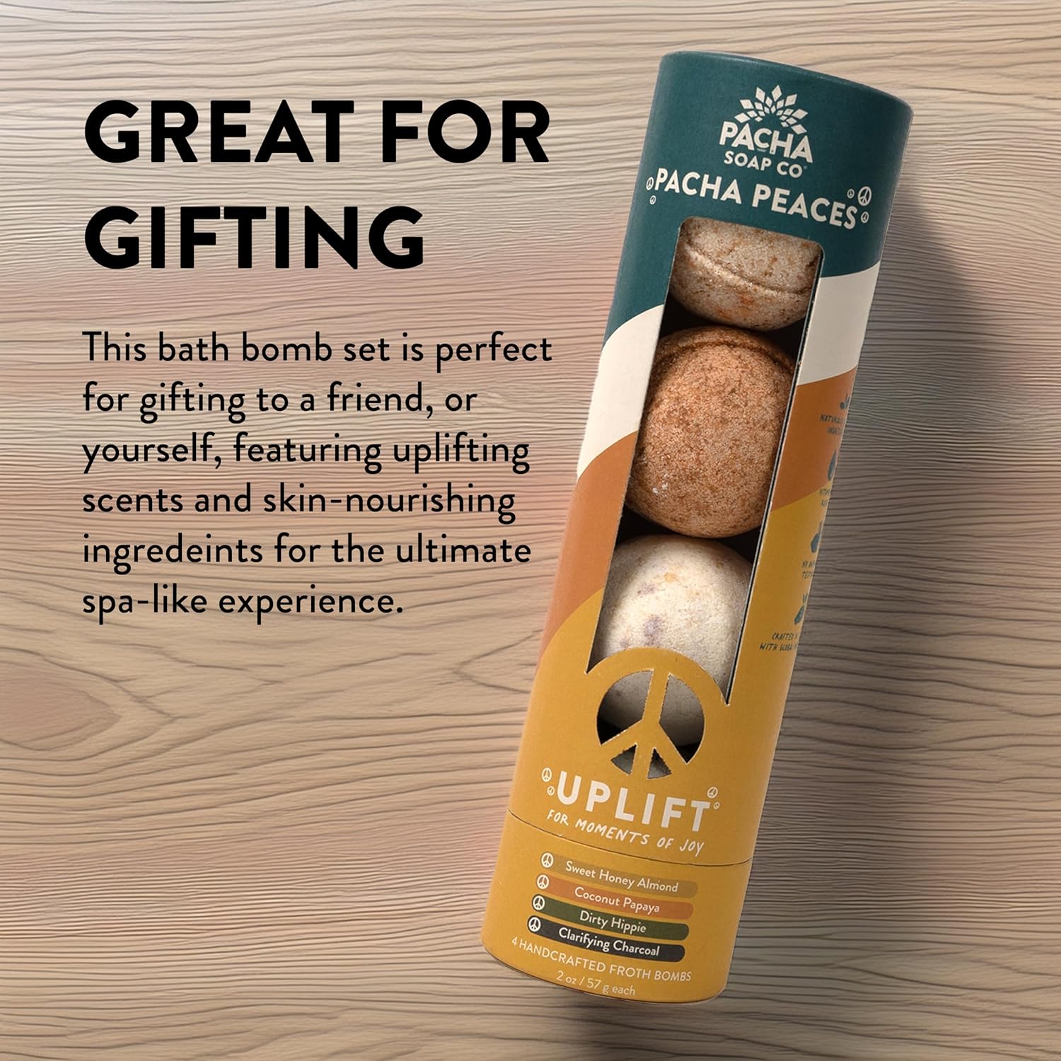 PACHA SOAP Co. Froth Bath Bomb, Pacha Peaces, Uplift, 2-Pack (8-Pieces) - Scents of Almond, Coconut, and Patchouli, & Lemongrass - Nourishing, Moisturizing, Naturally Derived & Handcrafted in The USA