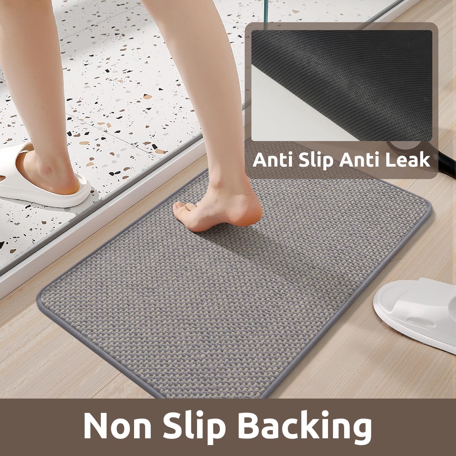 - [Non-Slip Backing] Rubber backed absorbent bath mat stays firmly in place and will not slip, thus reducing the risk of falling, especially suitable for the elderly and children. Chenille bath mat runner also prevents water from leaking onto the floor, keeping bath rug clean and dry.