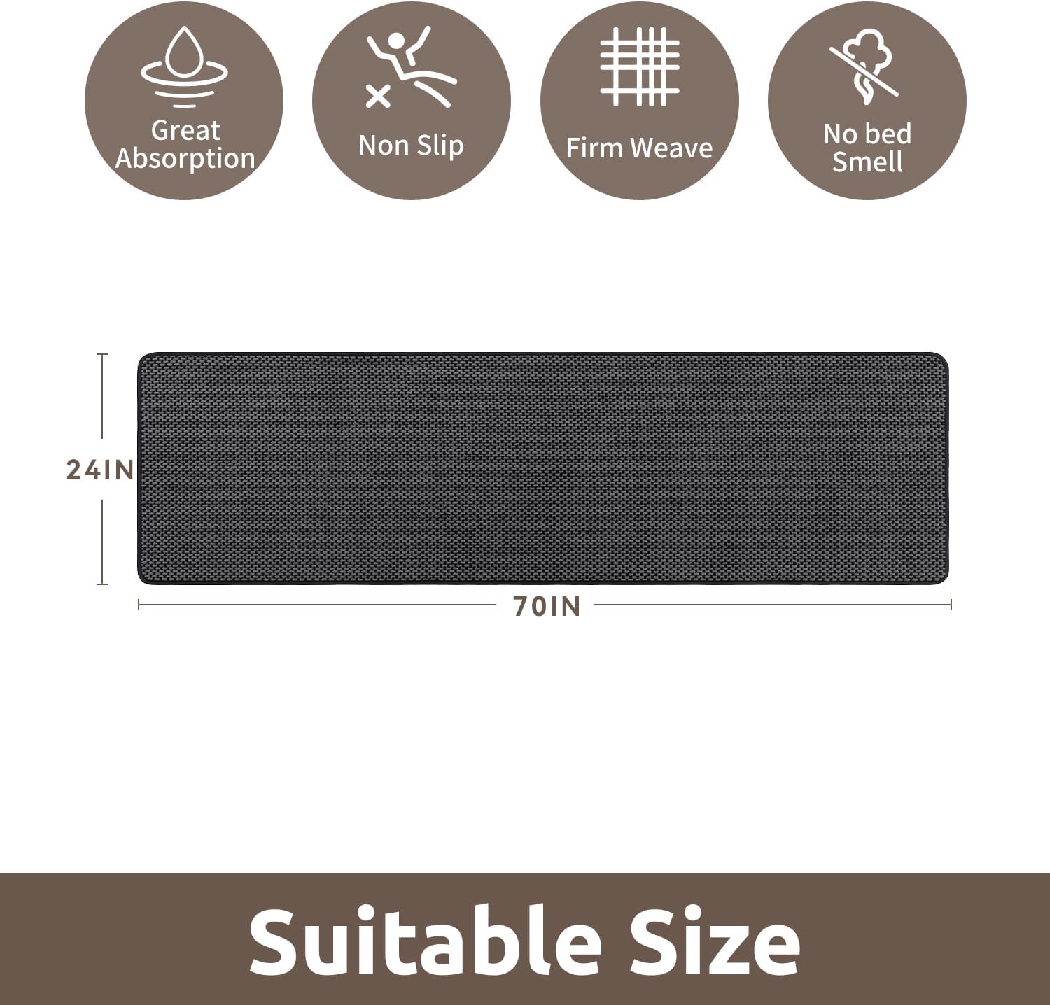 - [Super Absorbency] Long bathroom runner rugs with premium material absorbs water quickly, keep floors dry and clean. Tightly woven fibers allow bath runner to dry quickly and stay fresh. Ideal bathroom floor mat for daily use, it helps maintain a clean, comfortable, and slip-free environment.