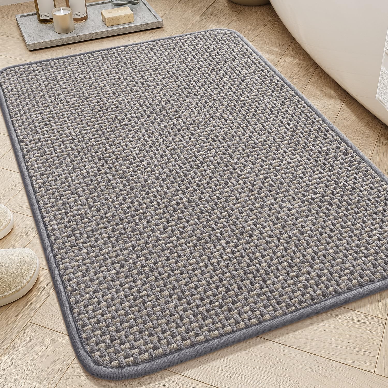 - [Super Absorbency] Tightly woven non slip bath mat with premium material quickly absorbs water keep floors dry and clean. Breathable structure makes dry quickly. Ideal bathroom floor mat for daily use, it helps maintain a clean, comfortable, and slip-free environment.