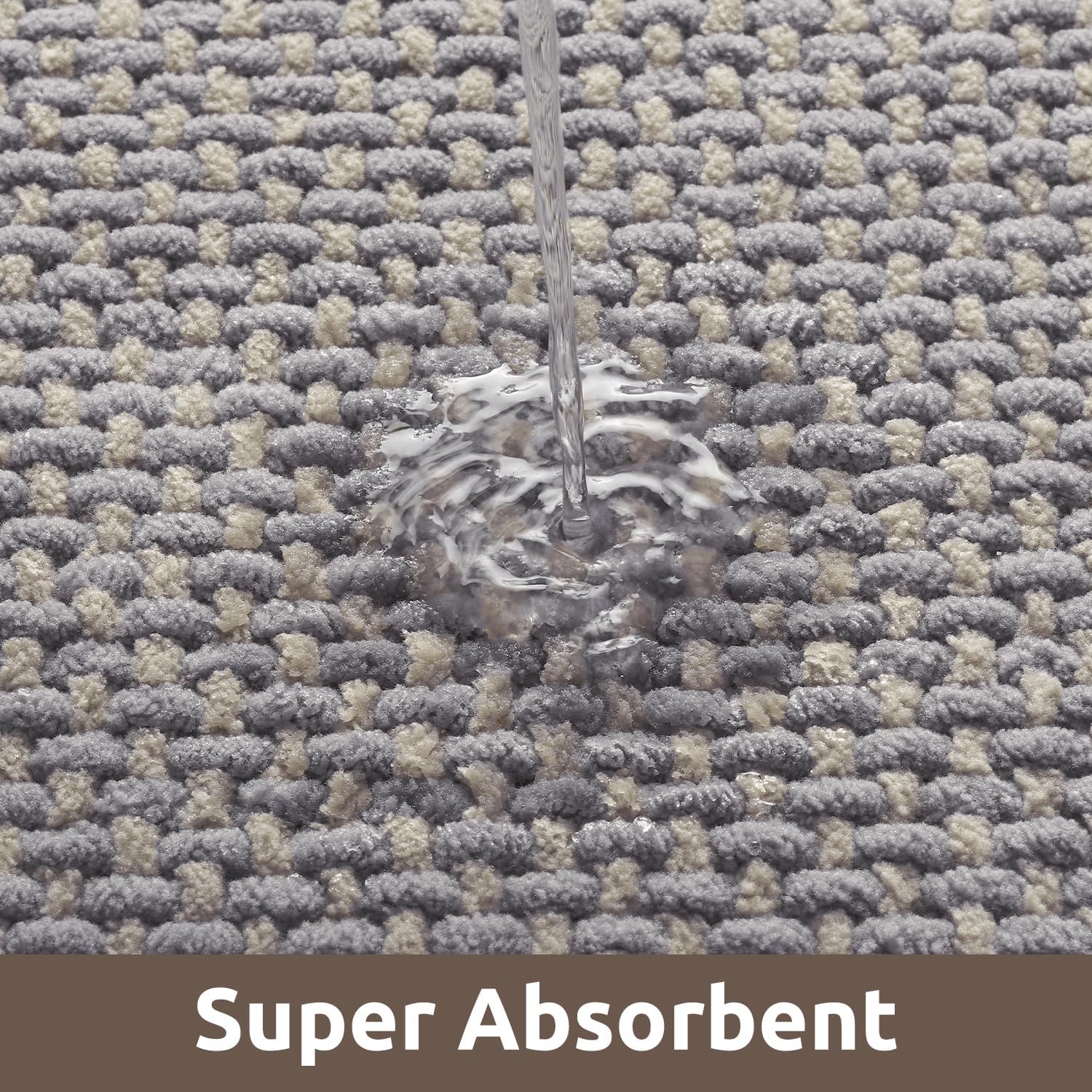 - [Non-Slip Backing] Rubber backed absorbent bath mat stays firmly in place and will not slip, thus reducing the risk of falling, especially suitable for the elderly and children. Chenille bath mat runner also prevents water from leaking onto the floor, keeping bath rug clean and dry.