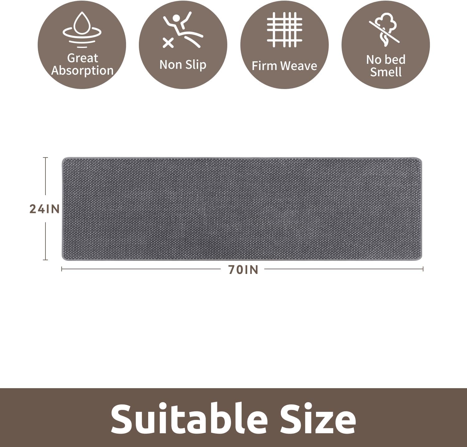 - [Super Absorbency] Long bathroom runner rugs with premium material absorbs water quickly, keep floors dry and clean. Tightly woven fibers allow bath runner to dry quickly and stay fresh. Ideal bathroom floor mat for daily use, it helps maintain a clean, comfortable, and slip-free environment.