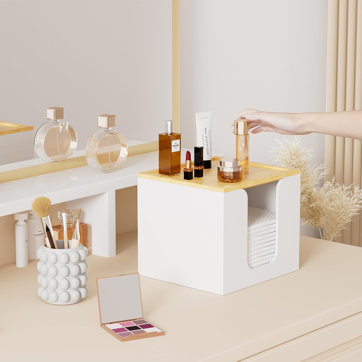 - 【Lid Storage Idea】This Face Towel Holder with ample storage space and a removable bamboo lid. The lid is great for holding makeup essentials and other small items.