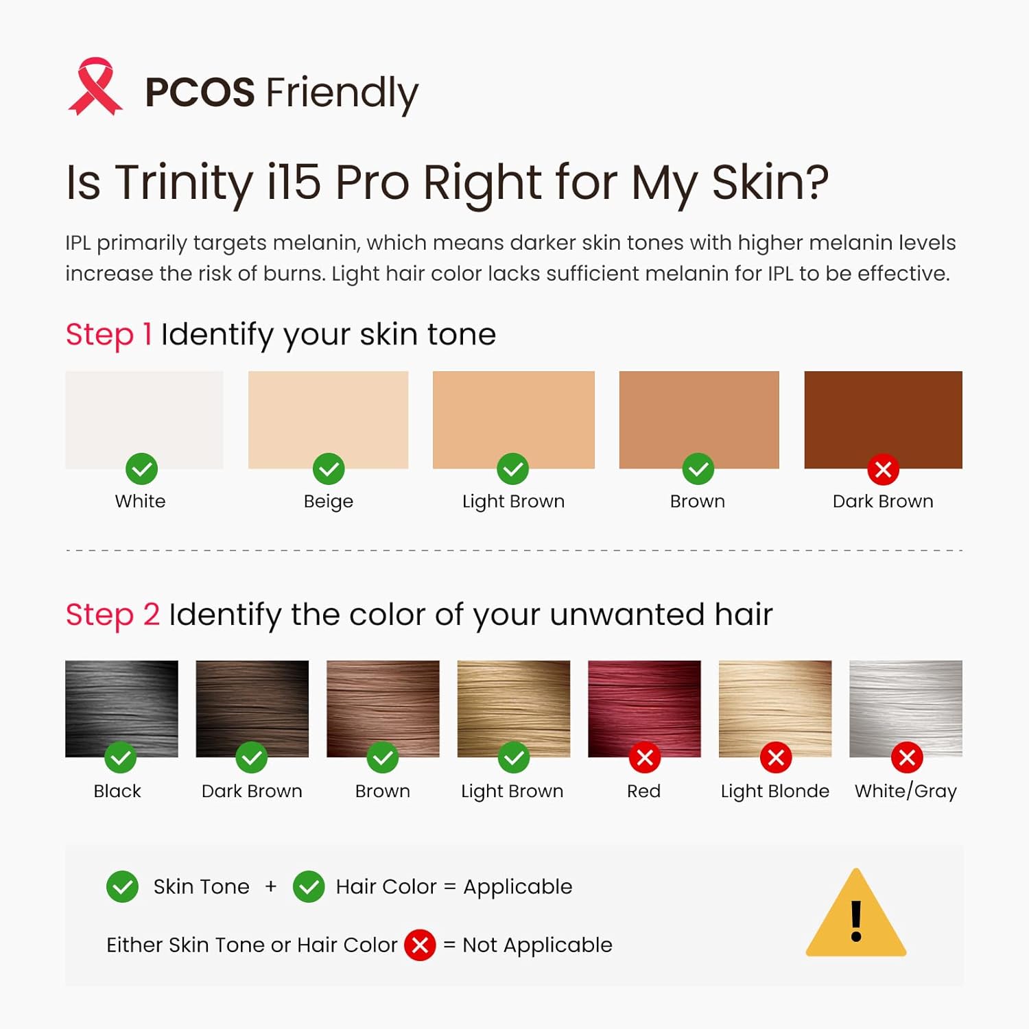 - Dual Lights 100W: The Trinity i15 Pro utilizes an industry-leading 100W high power and a 4.2cm² light window with dual lights, ensuring 4X efficiency and fast results. You will experience visible results in only 1 treatment and 97% hair reduction after 2 weeks. Bring salon-grade hair removal home