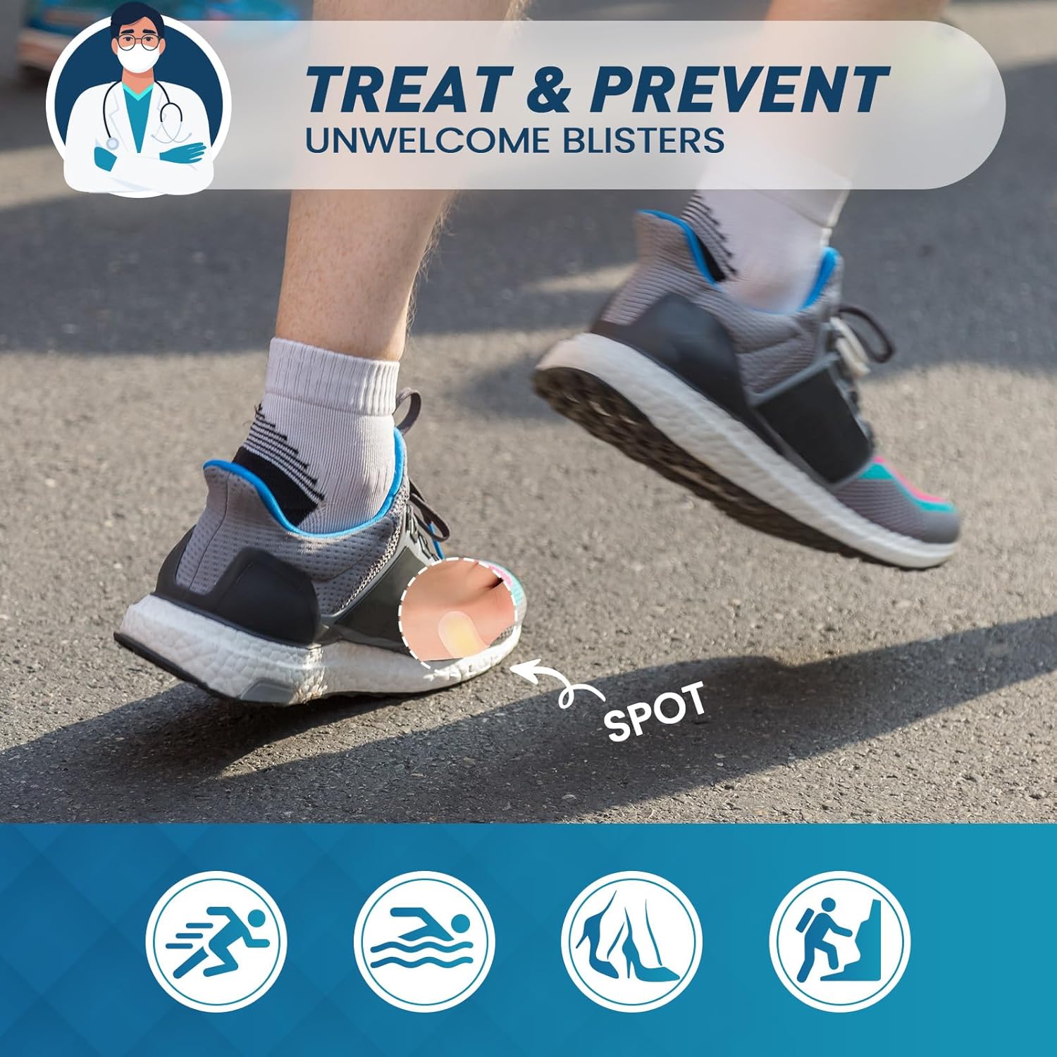 - Strong, Secure & Comfortable Fit: Our hydrocolloid blister pads are designed for ultimate blister prevention, offering strong adhesion that stays secure on feet, heels, and toes. Enjoy painless, residue-free removal for the utmost convenience and comfort, whether you're on the move or at rest.