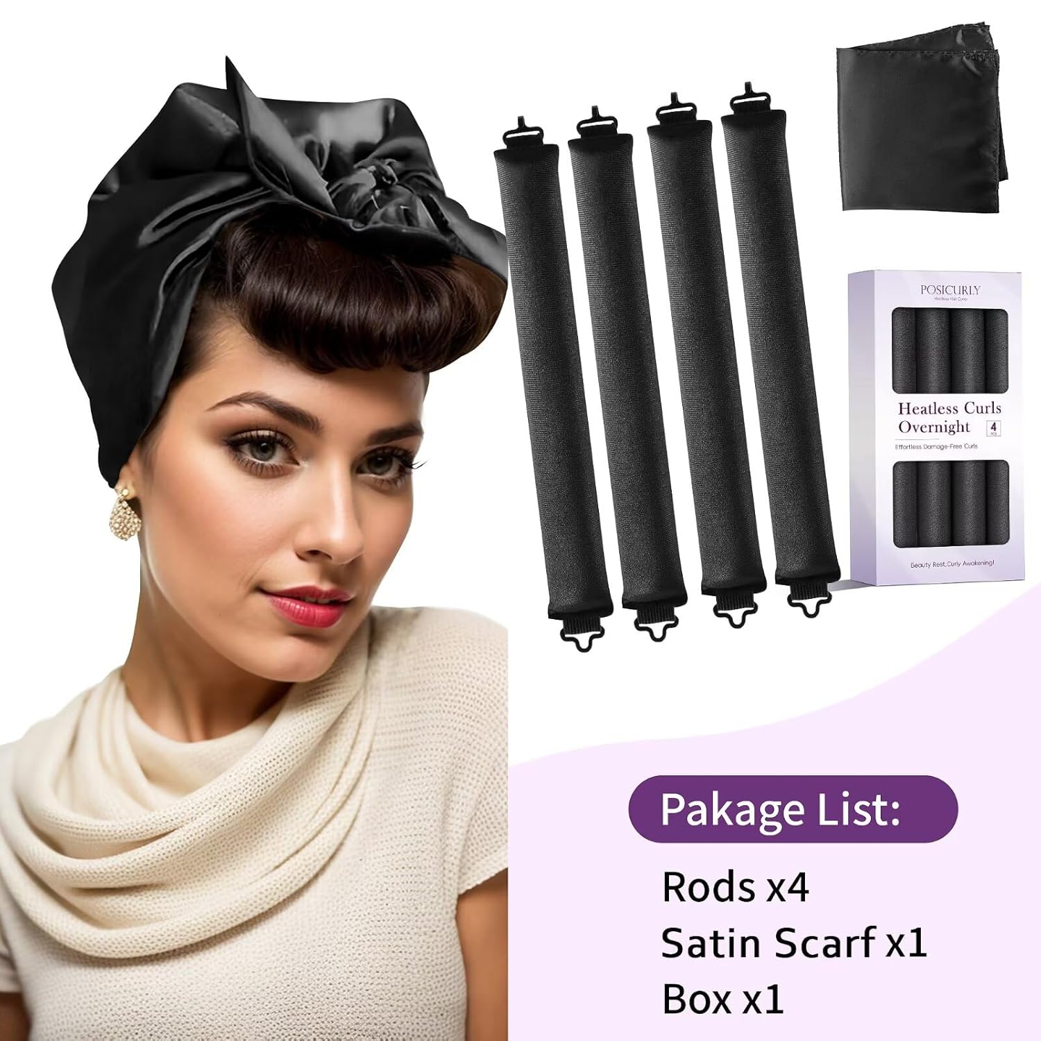 Heatless Curls Overnight Hair Curlers - 4 Pcs No-Heat Curling Rod to Sleep In,Velvet Hair Rollers with Satin Wrap