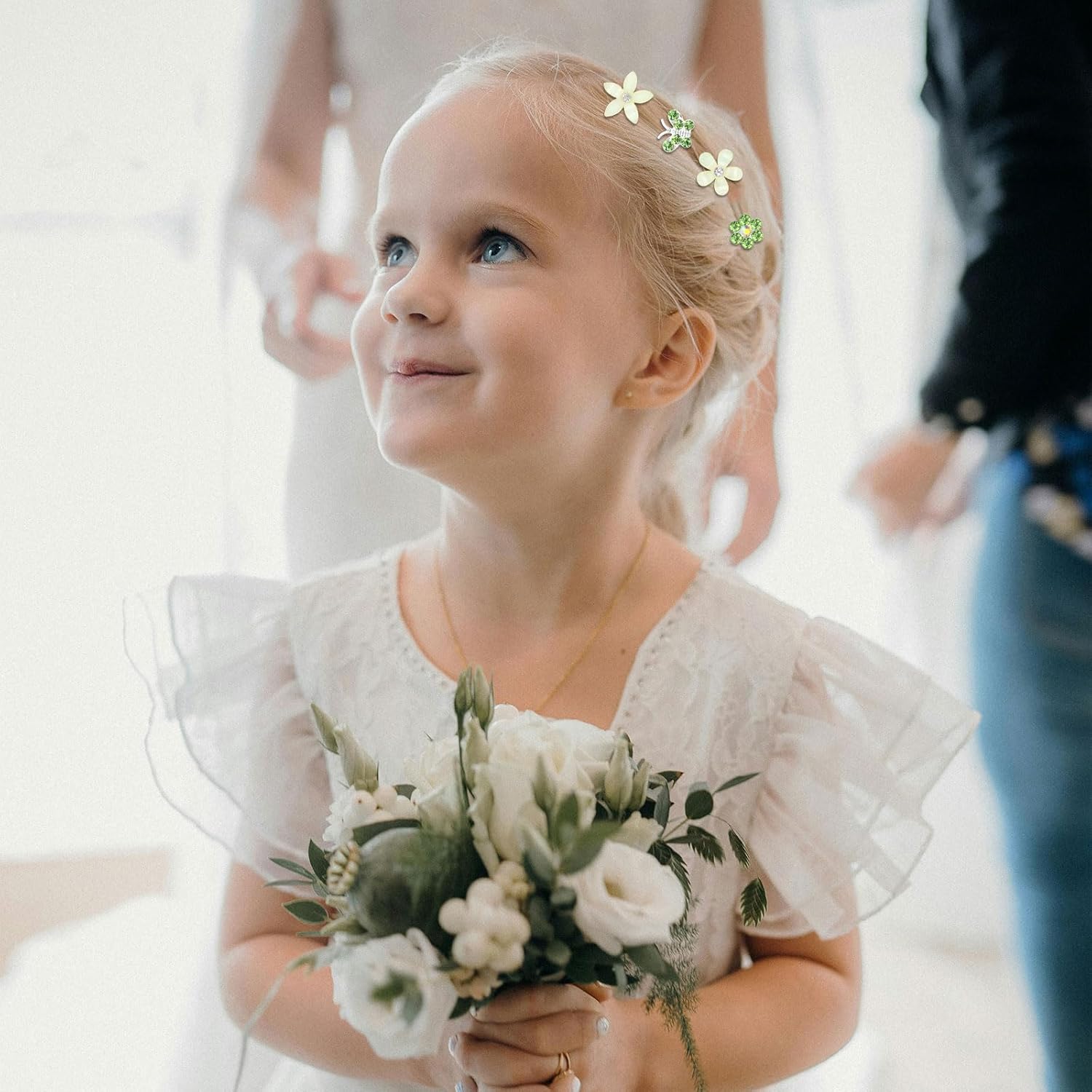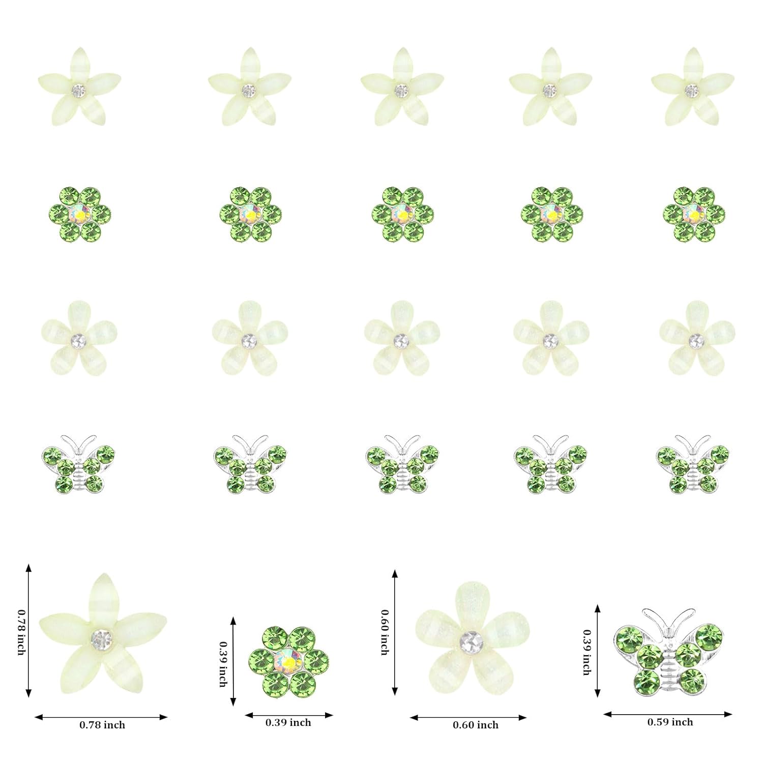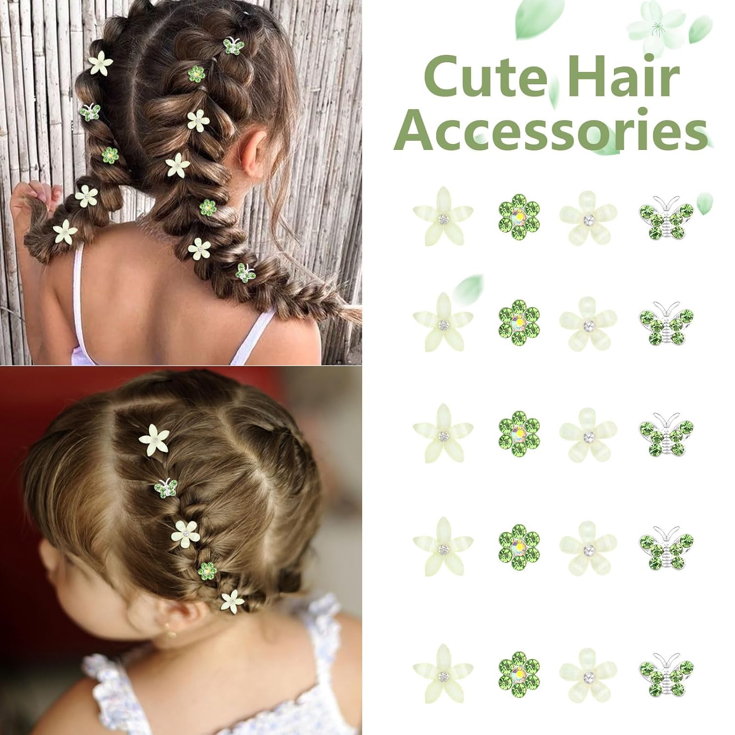 YISSION 20 Pcs Mini Flower Hair Clips Rhinestone Butterfly Hair Pins Small Decorative Hair Clips Wedding Hair Barrettes Green Hair Clips Bridal Flower Girl Hair Accessories for Girls Women