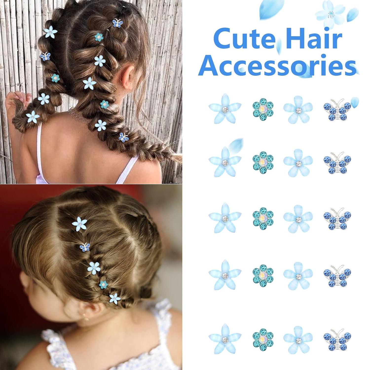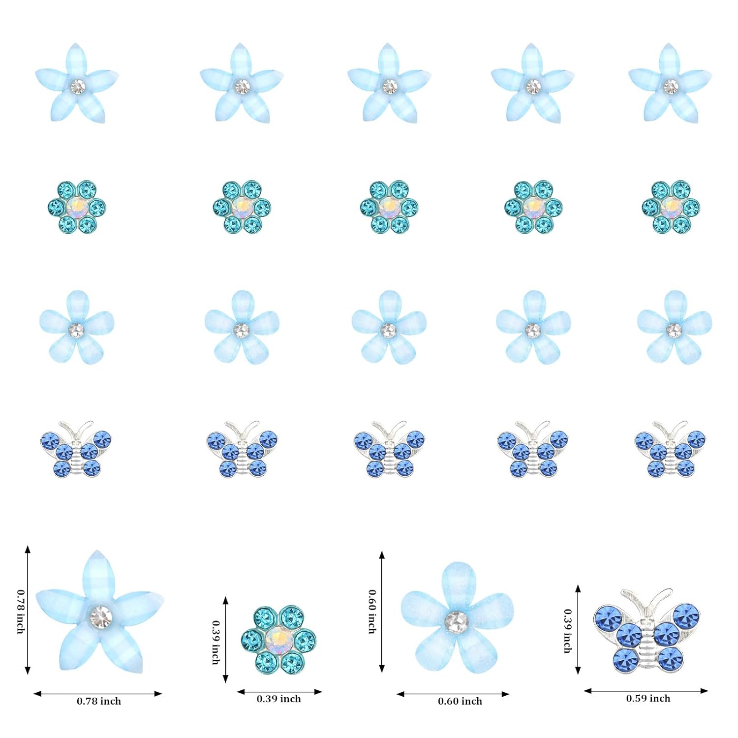 YISSION 20 Pcs Mini Flower Hair Clips Rhinestone Butterfly Hair Pins Small Decorative Hair Clips Wedding Hair Barrettes Blue Hair Clips Bridal Flower Girl Hair Accessories for Girls Women