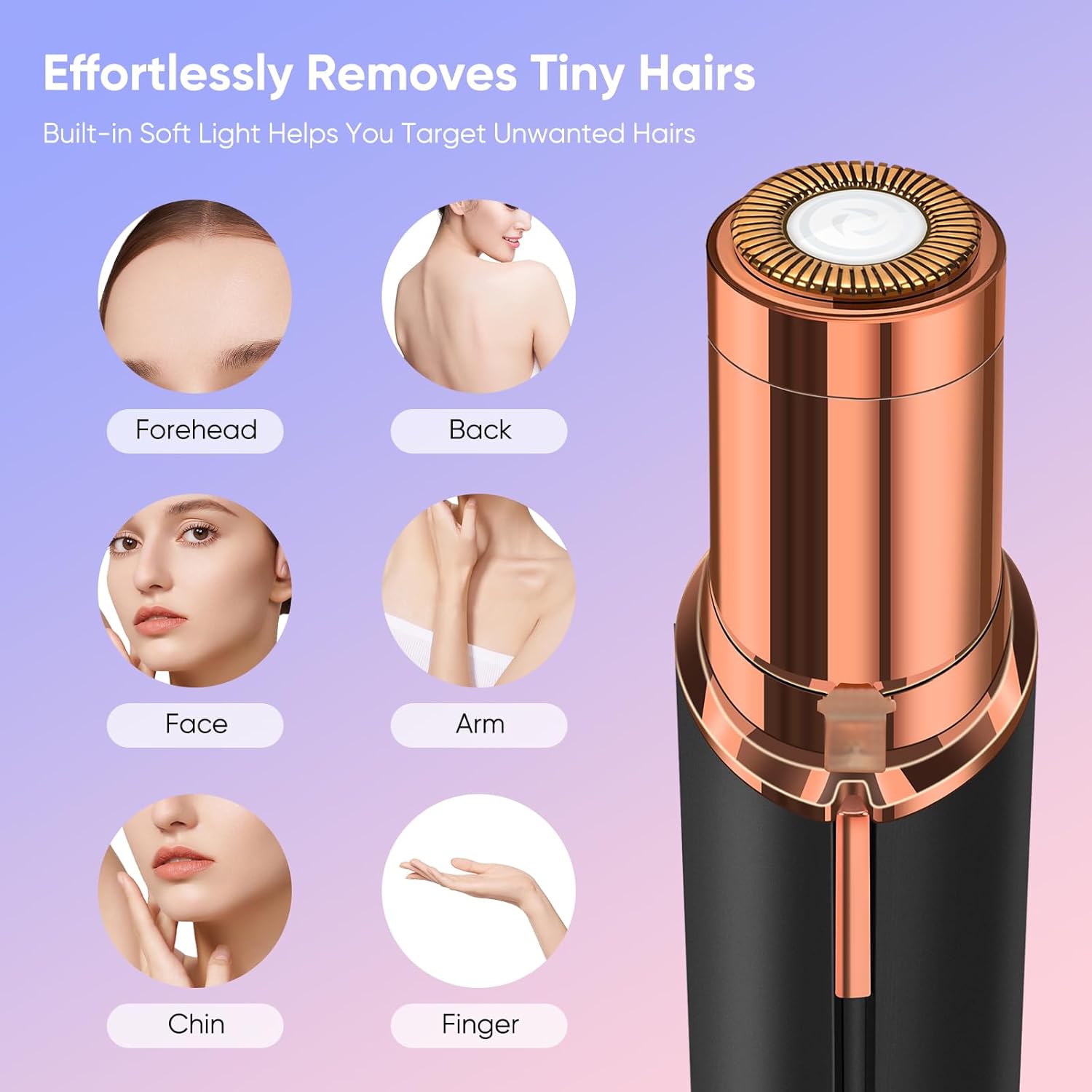 Facial Hair Remover for Women, Device, Remover Women Face, Finishing Touch Upper Lips, Chin & Cheeks, USB Rechargeable with LED LightIncluded Two Replacement Heads (Black)