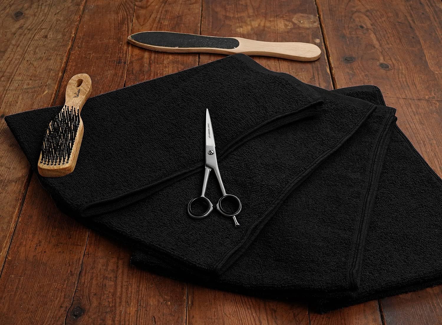 Premium 100% Cotton Hand Towels – Pack of 24, 16x27 Inch – Quick-Dry, Highly Absorbent Salon Towels for Hair Care, Gym, Spa & Bathroom – Black