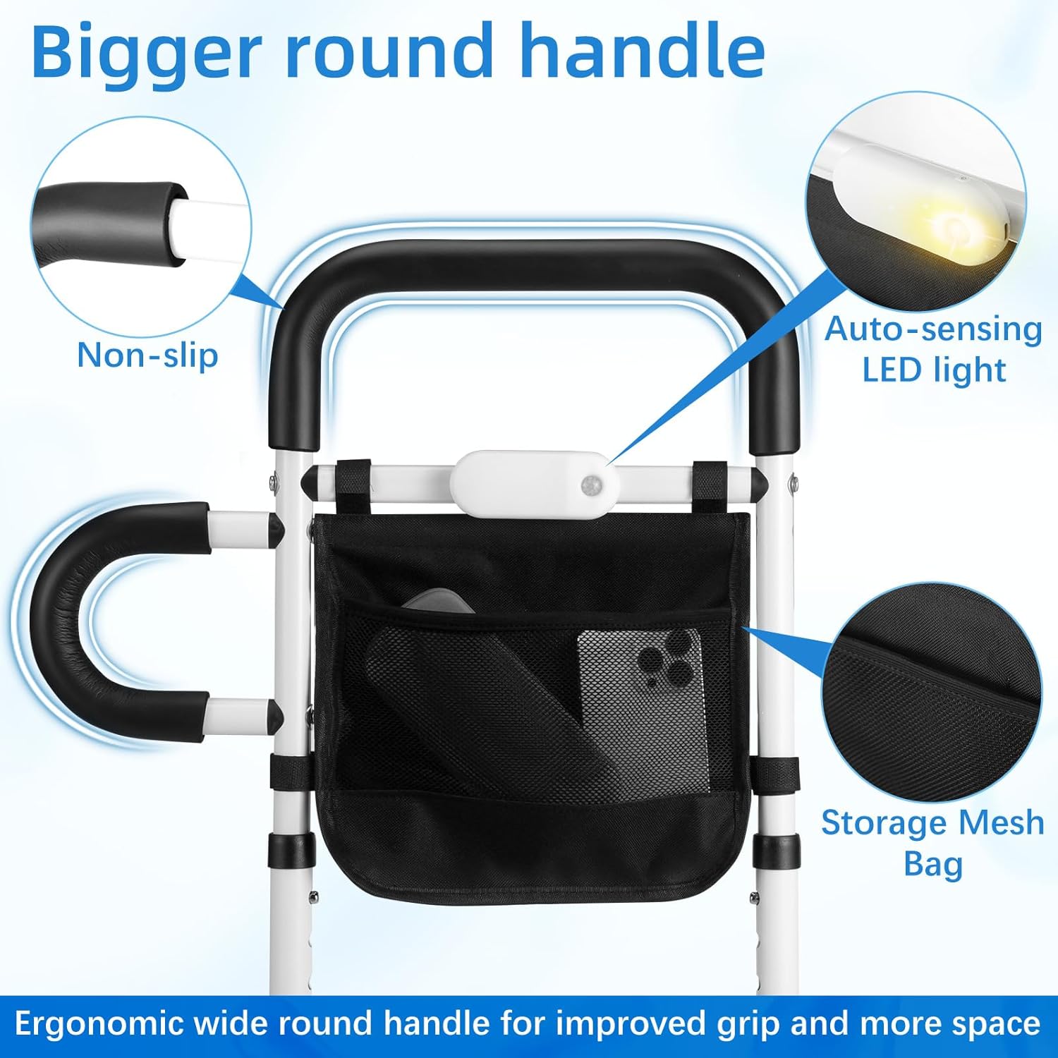 Bed Rails for Elderly Adults Safety; Adjustable Bed Rail with LED Motion Sensor Light, Bed Handle Bedside Assist for Grab Barwith Storage Pouch, Bed Side Rails-Fits Twin Full Queen King Grey