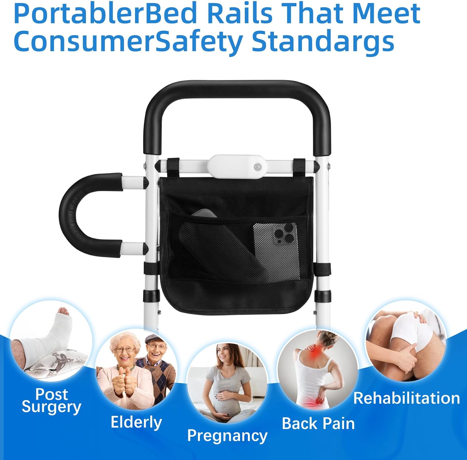 - ăNIGHT-TIME SAFETYăThe LED sensor light on the pocket of the bed assist rails for seniors provides illumination when the lights are out. The bed side rails have side grip rails that can be mounted on either the left or right to provide convenient direction for hands