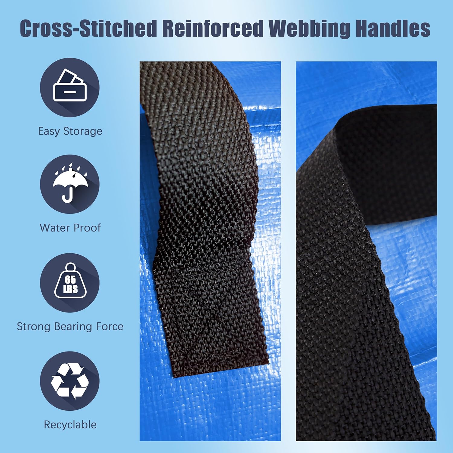 12 Pack Large Strong Moving Bags with Zippers & Carrying Handles - Water-Resistant - Heavy Duty Storage Tote for Space Saving, Fold Flat, Alternative to Moving Box (Sky Blue)