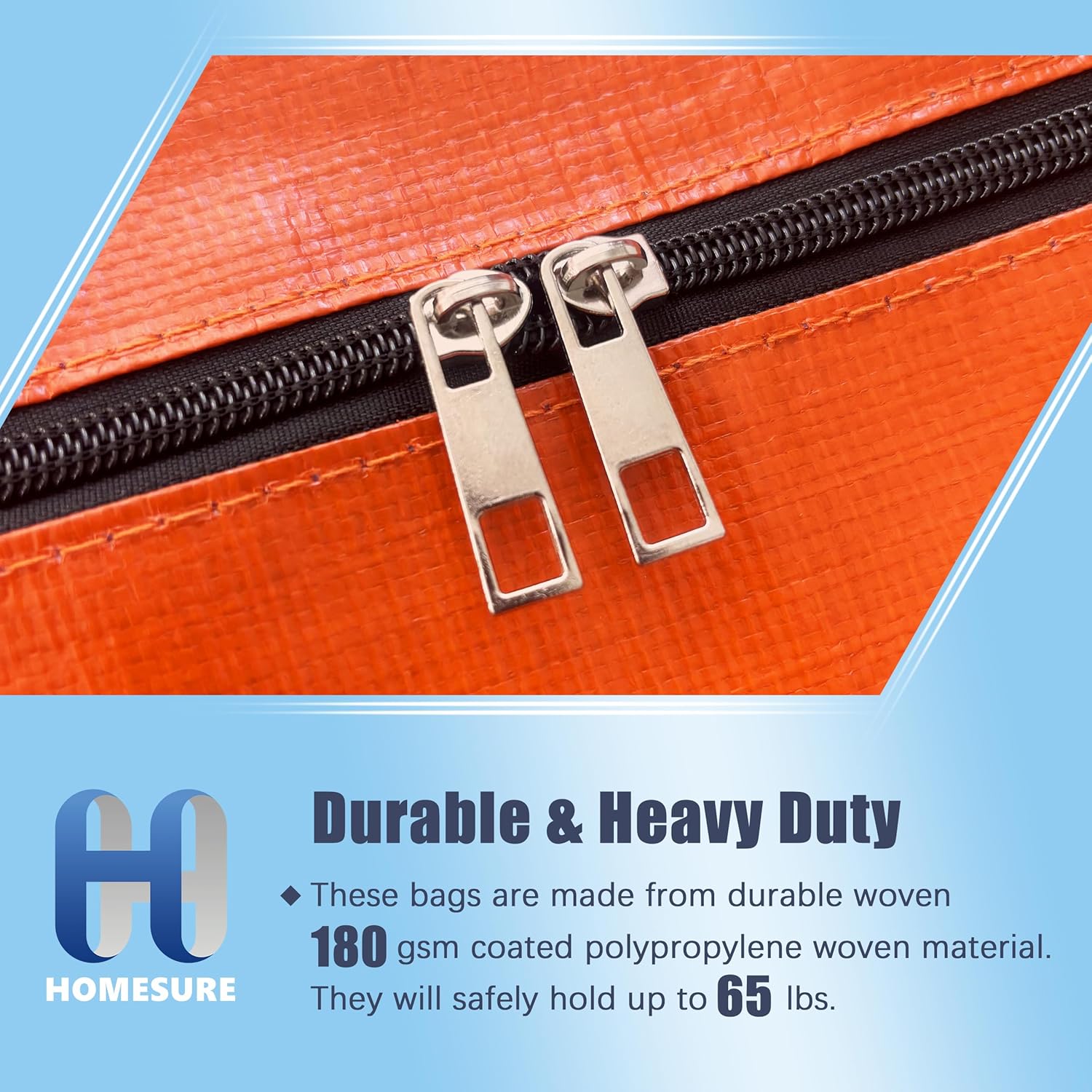 4 Pack Large Strong Moving Bags with Zippers & Carrying Handles - Water-Resistant - Heavy Duty Storage Tote for Space Saving, Fold Flat, Alternative to Moving Box (Orange)