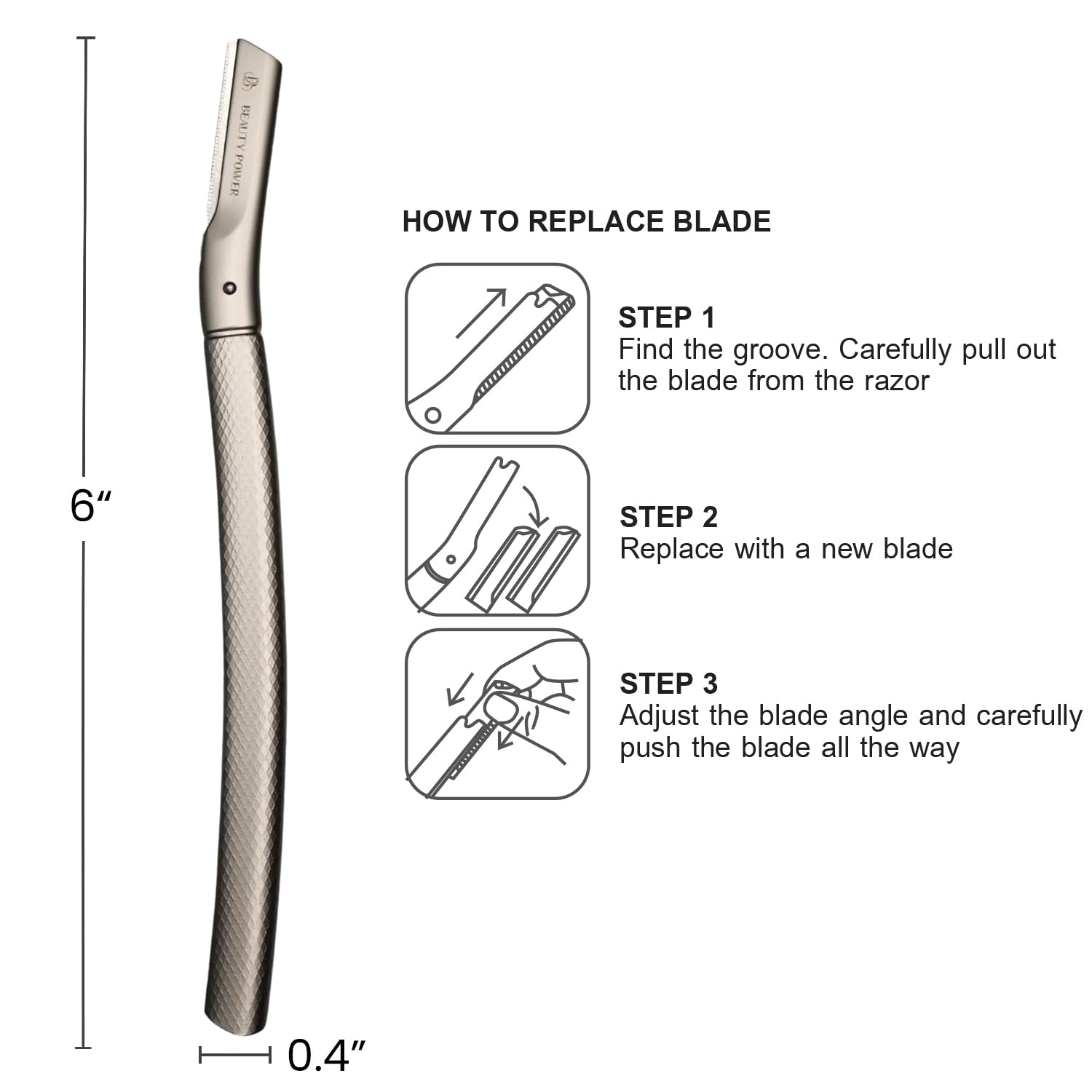 - ✅ 6 REPLACEABLE BLADES FOR LONG-LASTING USE – This face razor comes with six ultra-sharp, stainless steel blades, ensuring precision and durability. Swap blades effortlessly for a fresh and hygienic shave every time.