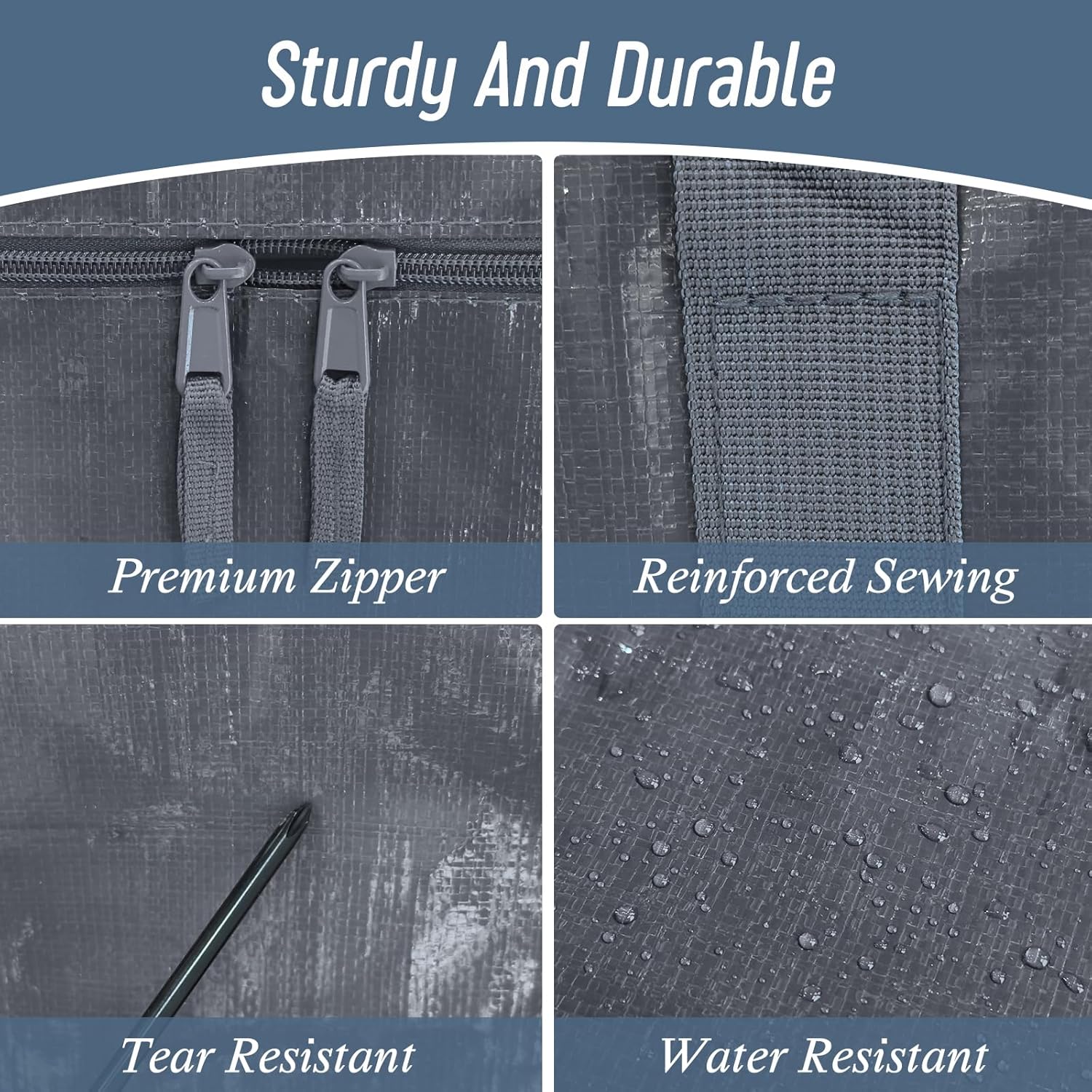 12 Pack Extra Heavy Duty Large Moving Bags with Strong Zipper & Comfortable Handles, Sturdy & Durable Clothes Storage Bags Totes Bins, Packing Moving Boxes for College Supplies, Gray
