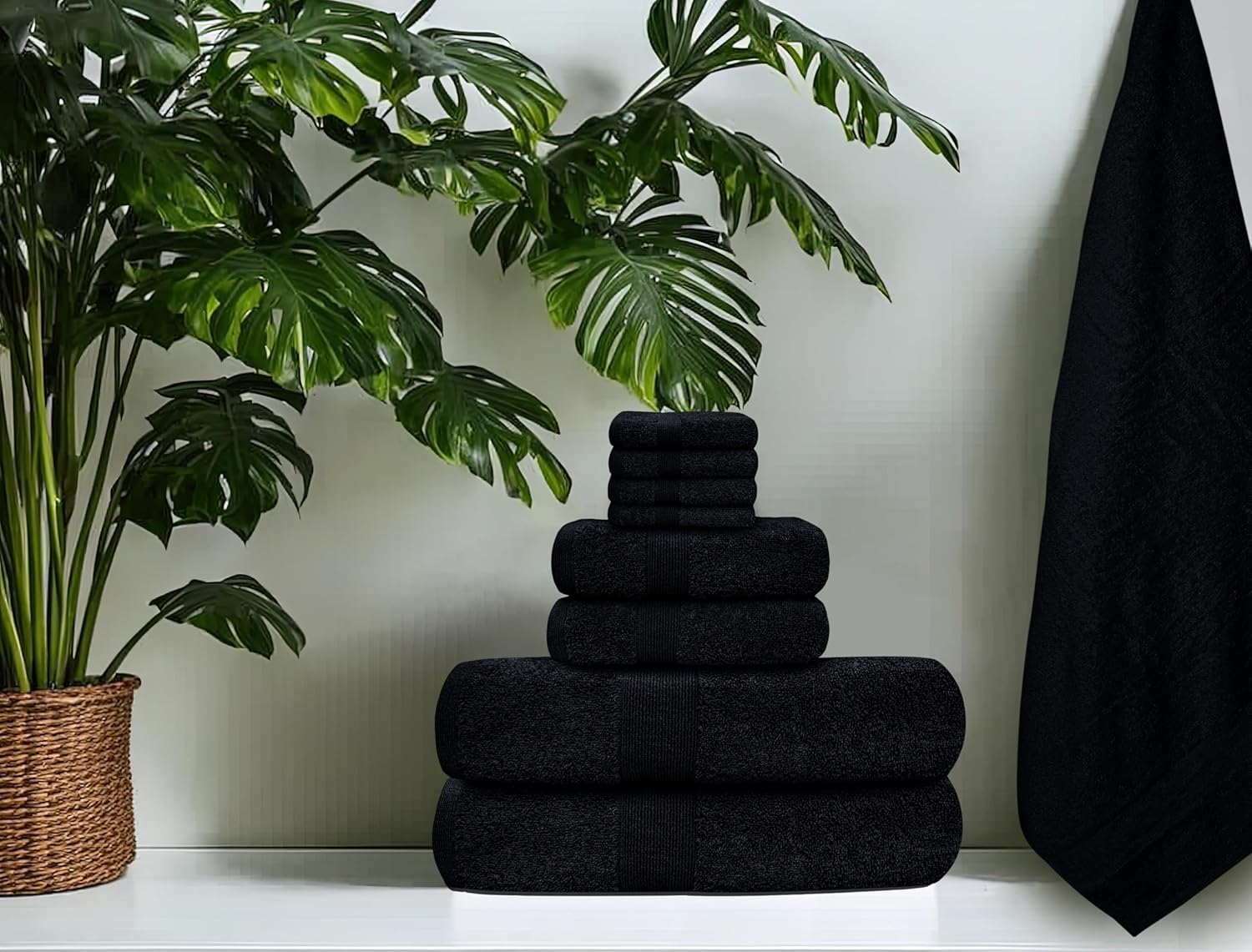 Luxury 8 Piece Towel Set, 2 Bath Towels 2 Hand Towels 4 Washcloths, Towels for Bathroom, Home, Spa & Gym - Highly Absorbent Ultra Soft Quick-Dry (Black)