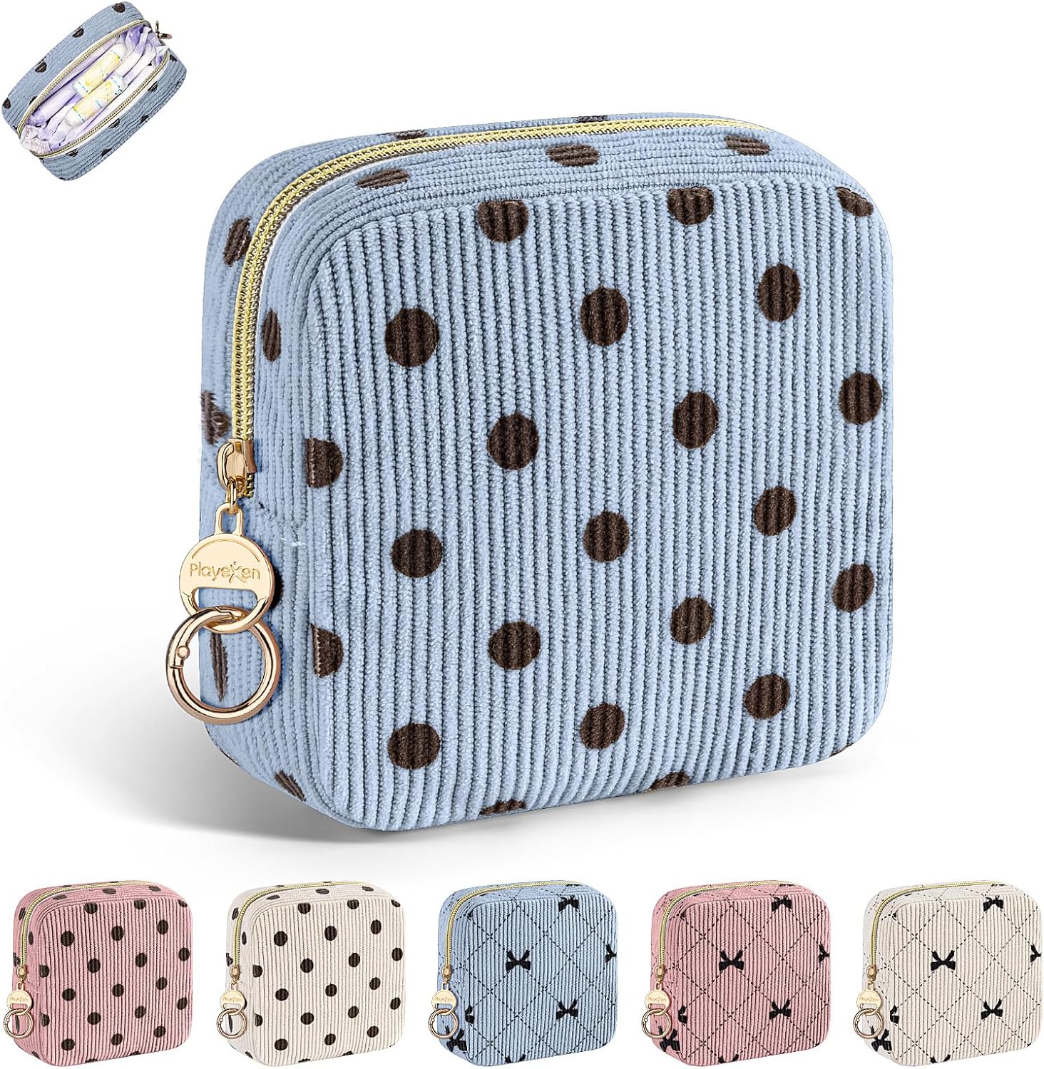 Period Bag for Teen Girls, Corduroy Cute Sanitary Napkin Storage Bag, Menstrual Pad Bag Tampon Holder for Purse