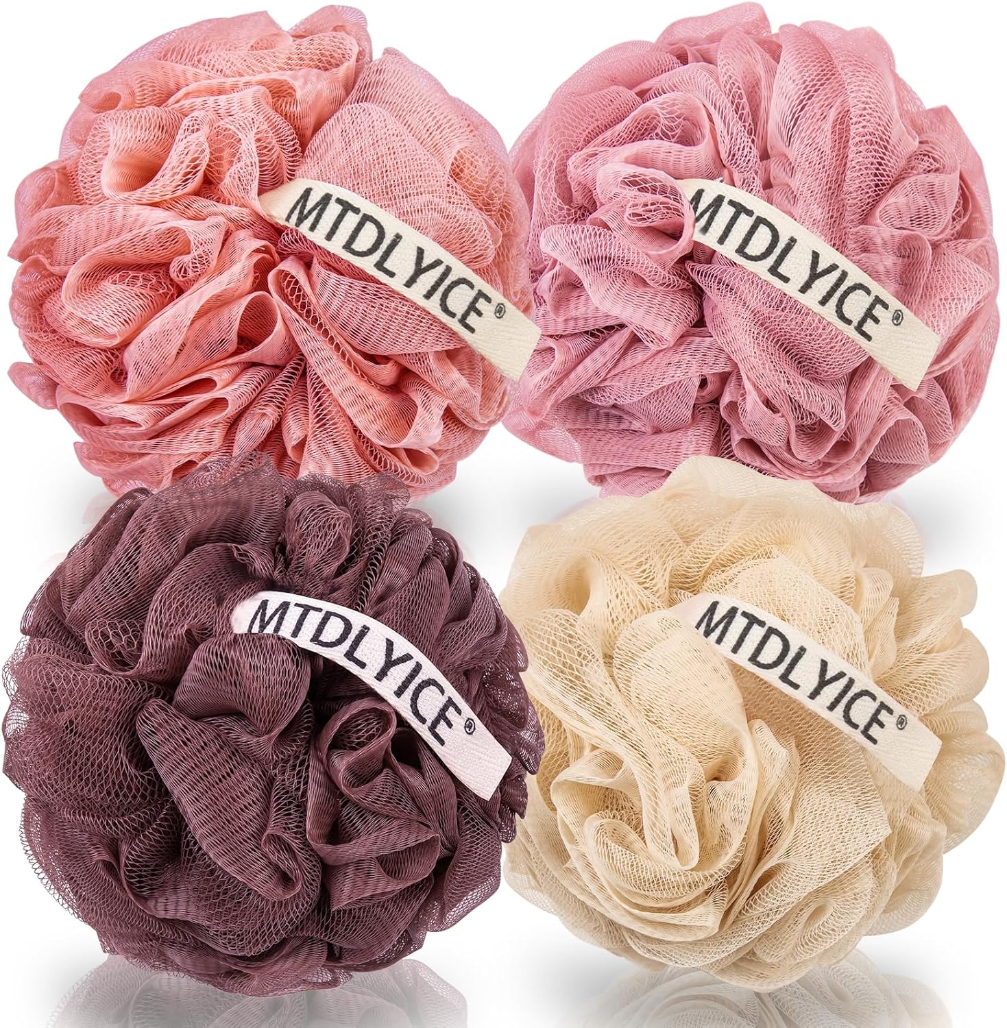 Loofah Sponge, XXL Large Loofah 100g 4 Pack, Bath Sponge Soft Mesh Shower for Men, Body Scrub, Shower Pouf Bath Accessories, for Body Wash, Soap (Red Soil)