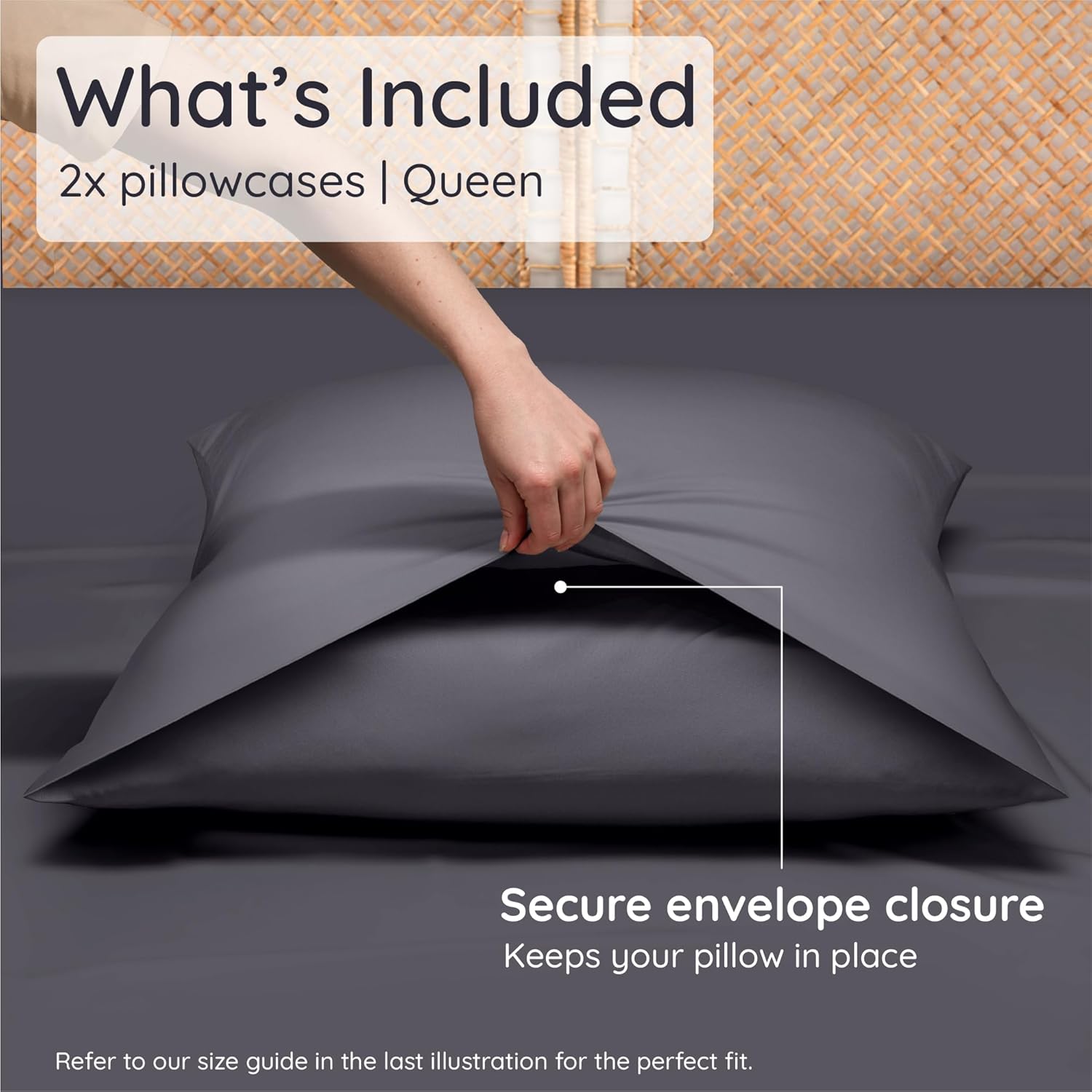 Bambaw 100% Viscose Derived from Bamboo Pillowcase Queen Size – Set of 2 Cooling Pillow Cases for Hot Sleepers, Envelope Pillow Cases Queen Size, Breathable & Super Soft Pillow Cases (Charcoal)
