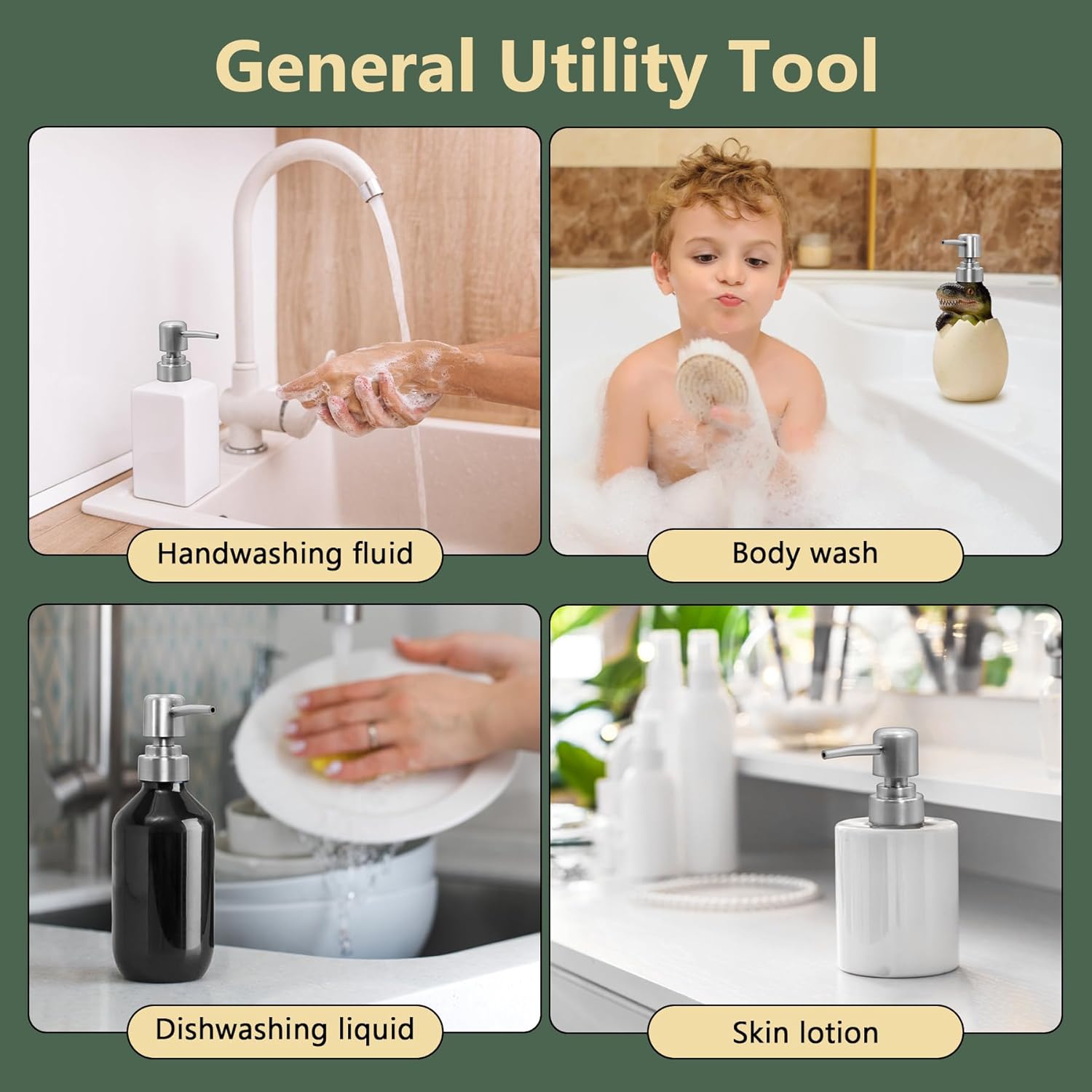 - General Utility Tool:Our soap dispenser pump is designed to fit various liquid bottles, efficiently dispensing soap, lotion, facial cleanser, hand wash, dishwashing liquid, essential oils, and shampoo. It serves as the perfect replacement pump for these everyday products, offering convenience and durability, making it an ideal liquid dispensing solution for both home and commercial use