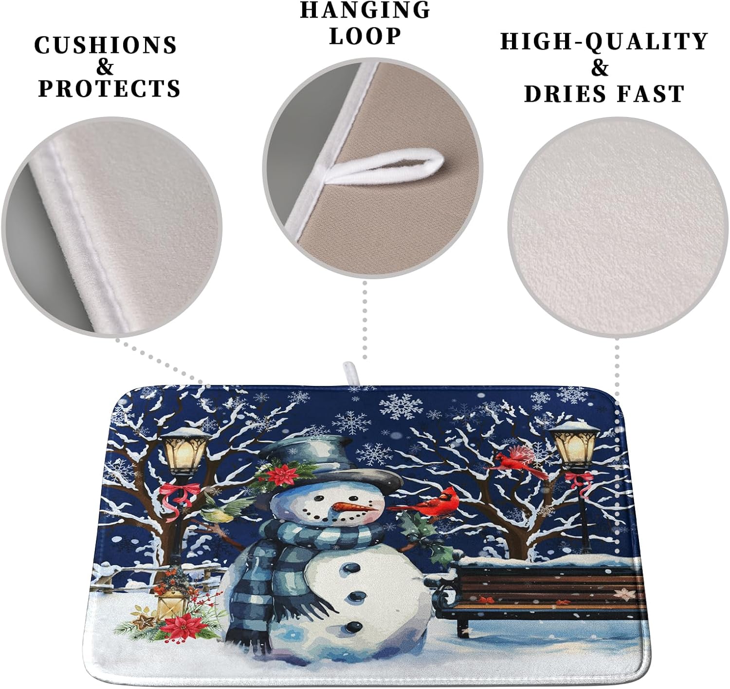 - Easy Storage & Care: Machine washable or hand washable. Machine wash with cold water in gentle cycle. Do not bleach, tumble dry low. The winter Dish Drying Mat for Kitchen Counter is designed to be durable and long-lasting. Includes a sewn in hang tab to hang up mat to dry fast