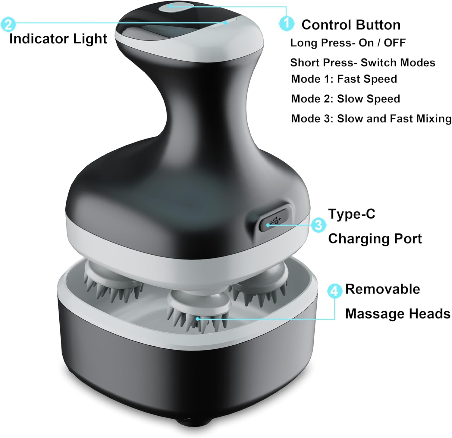 Electric Scalp Massager, Portable Rechargeable Head Massager with 8 Removable Massage Claws, Waterproof Handheld Hair Scalp Scratcher for Full-Body Massage and Stress Relax