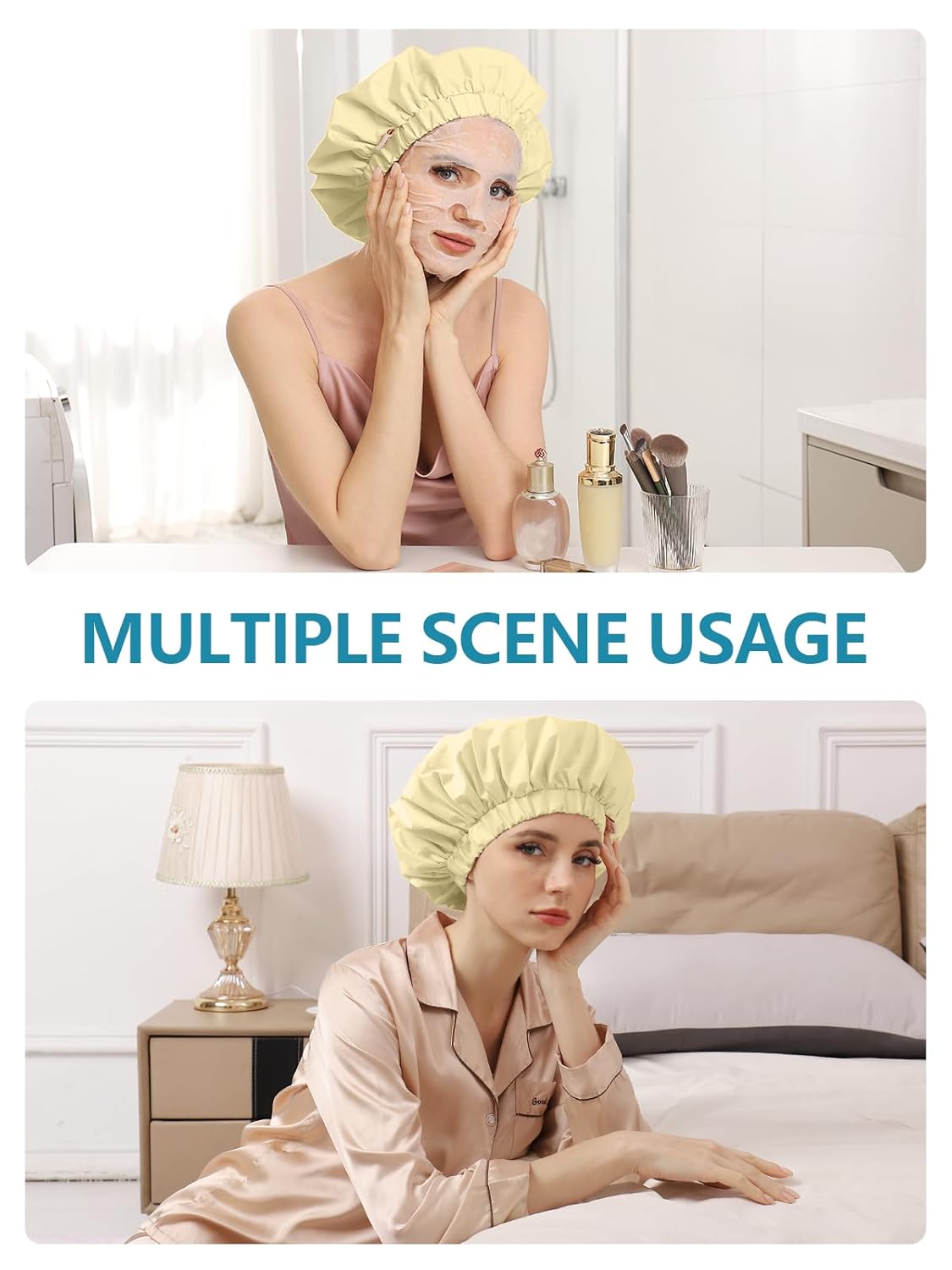 Years calm Reusable Waterproof Shower Caps for Women, Hair Caps for Showers, Double-Layer Elastic Design, for All Hairstyles, Travel-Friendly (Yellow)