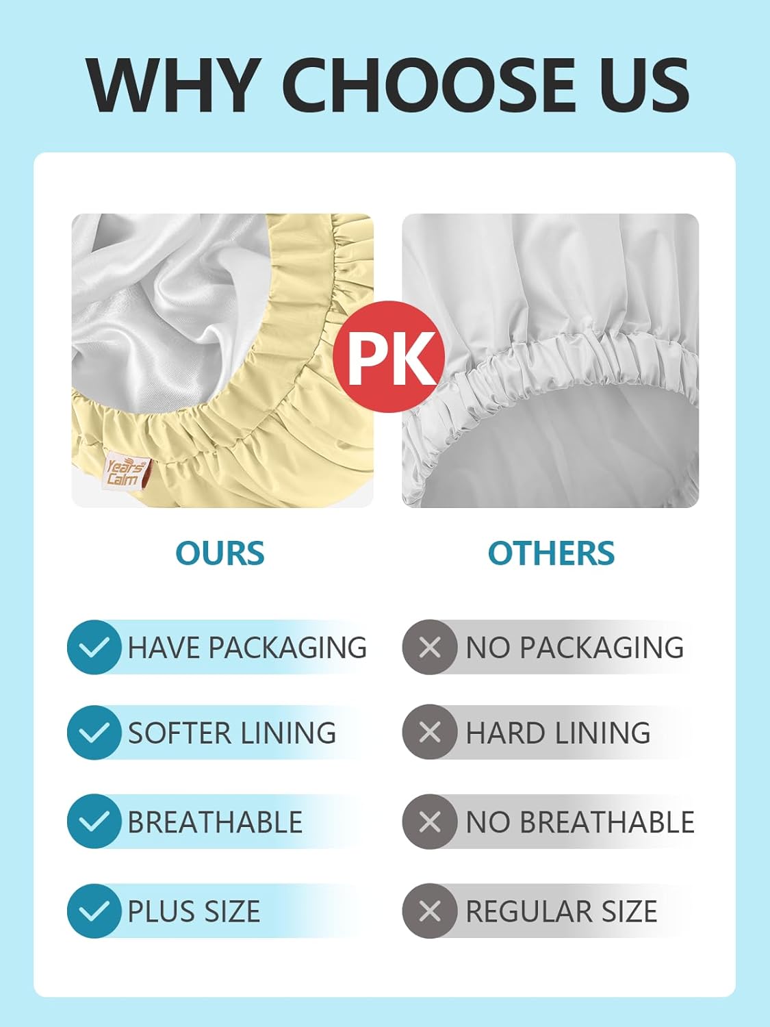 - Reusable Easy to Clean:Years Calm shower caps are made from durable, easy-to-clean materials. They are reusable, offering a sustainable and cost-effective solution for everyday use. Simply wash and use it again and again