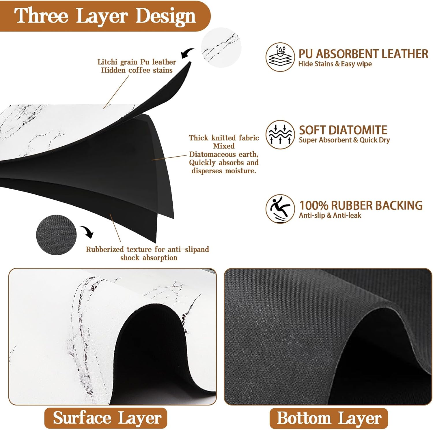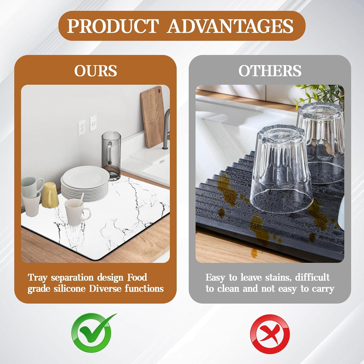 - 【Non-Slip & Durable】The drying mats for kitchen counter feature a sturdy non-slip rubber base that ensures stability on any surface, even when wet. Put household items on the rubber mat for kitchen sink counter and the non-slip bottom will be adsorbed on the table to prevent them from moving.