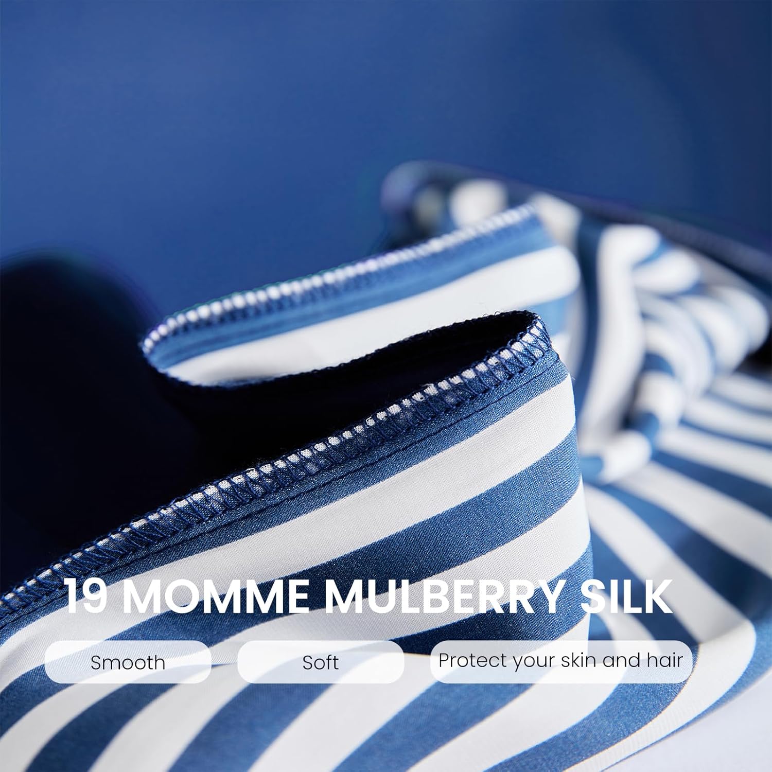 THXSILK Mulberry Silk Pillowcase for Hair and Skin Health, Grade 6A+ Mulberry Silk Pillowcase with Hidden Zipper, Soft and Breathable, 1pc (King 20"x36", Blue White Stripes)