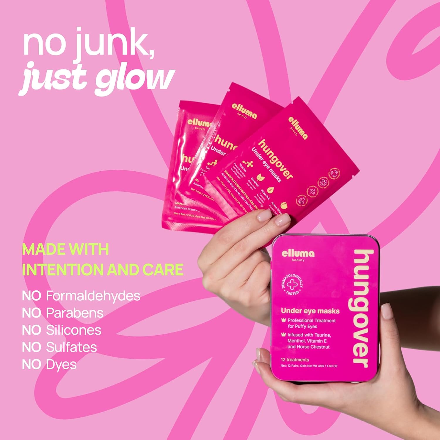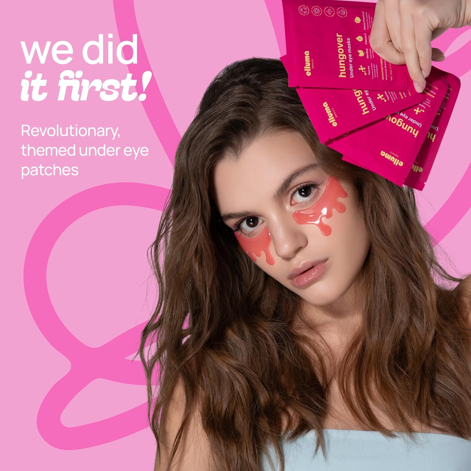 Under Eye Patches 12 Pairs of Themed Hydrogel Eye Gel Pads - For Puffy Eyes and Dark Circles, Under Eye Bags, Wrinkles - Hungover Set with Menthol & Taurine