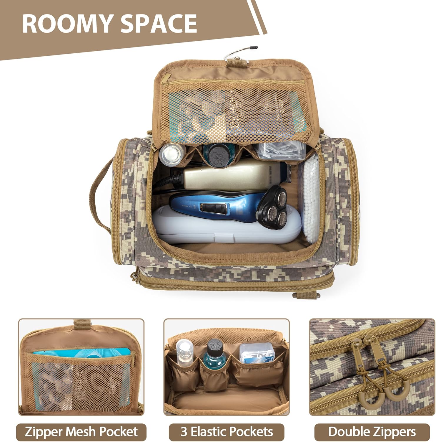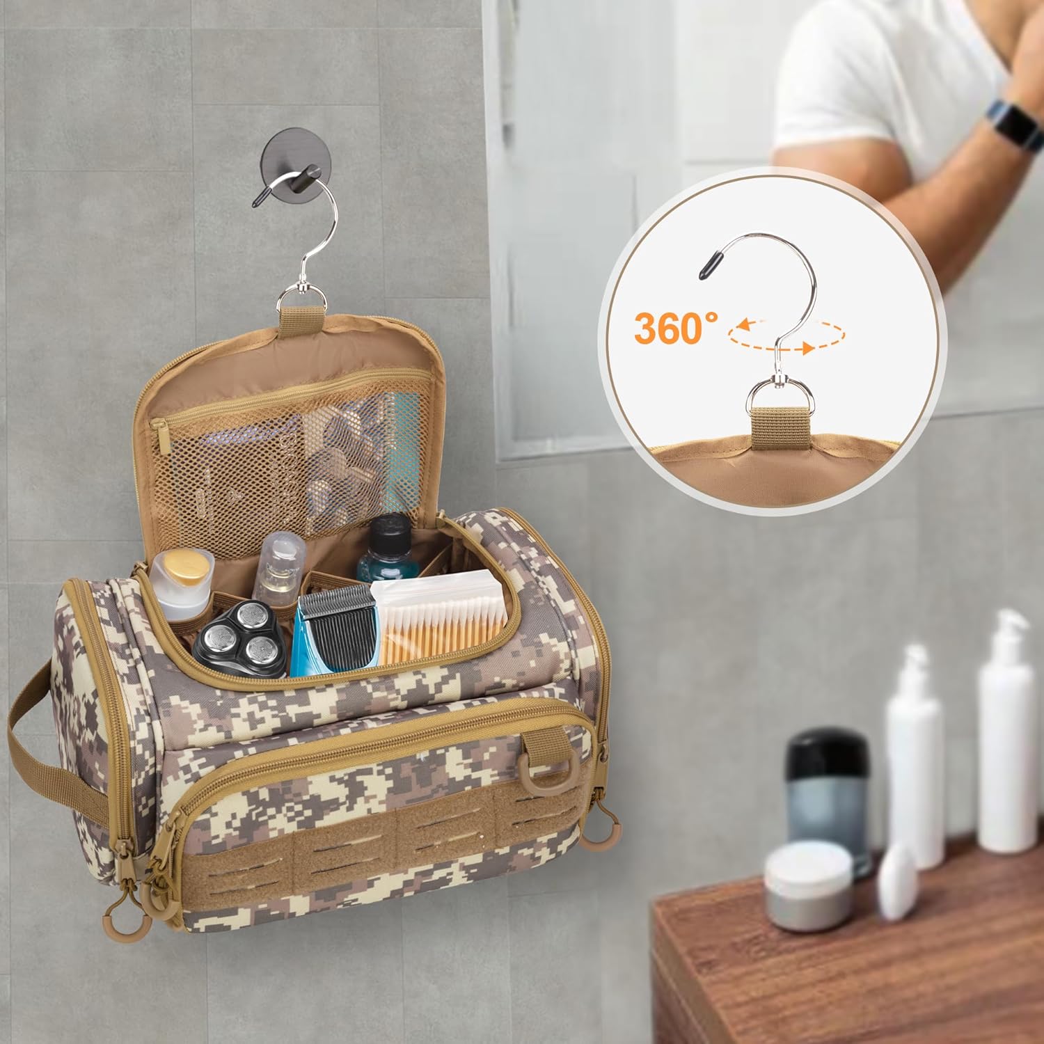 Tactical Toiletry Bag for Men, Hanging Hygiene Bag, Travel Dopp Kit Organizer for Shaving, Shower Essentials and Toiletries, Desert Yellow (Empty Bag)