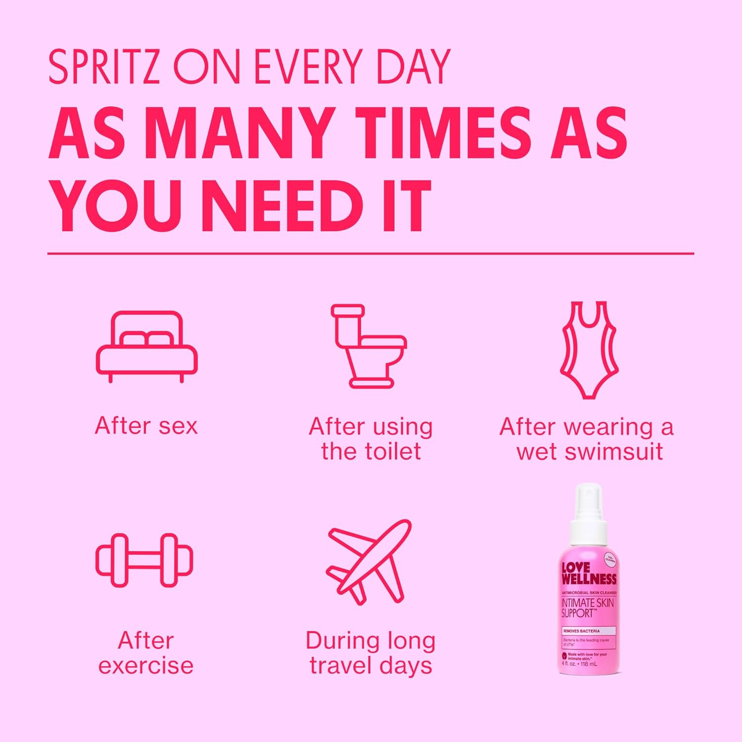 Love Wellness Intimate Skin Support I FDA-Cleared Cleanser Spray I Removes Buildup & Soothes Irritated Skin, Hypochlorous Acid Formula, pH Balanced & Fragrance Free, 4 fl oz