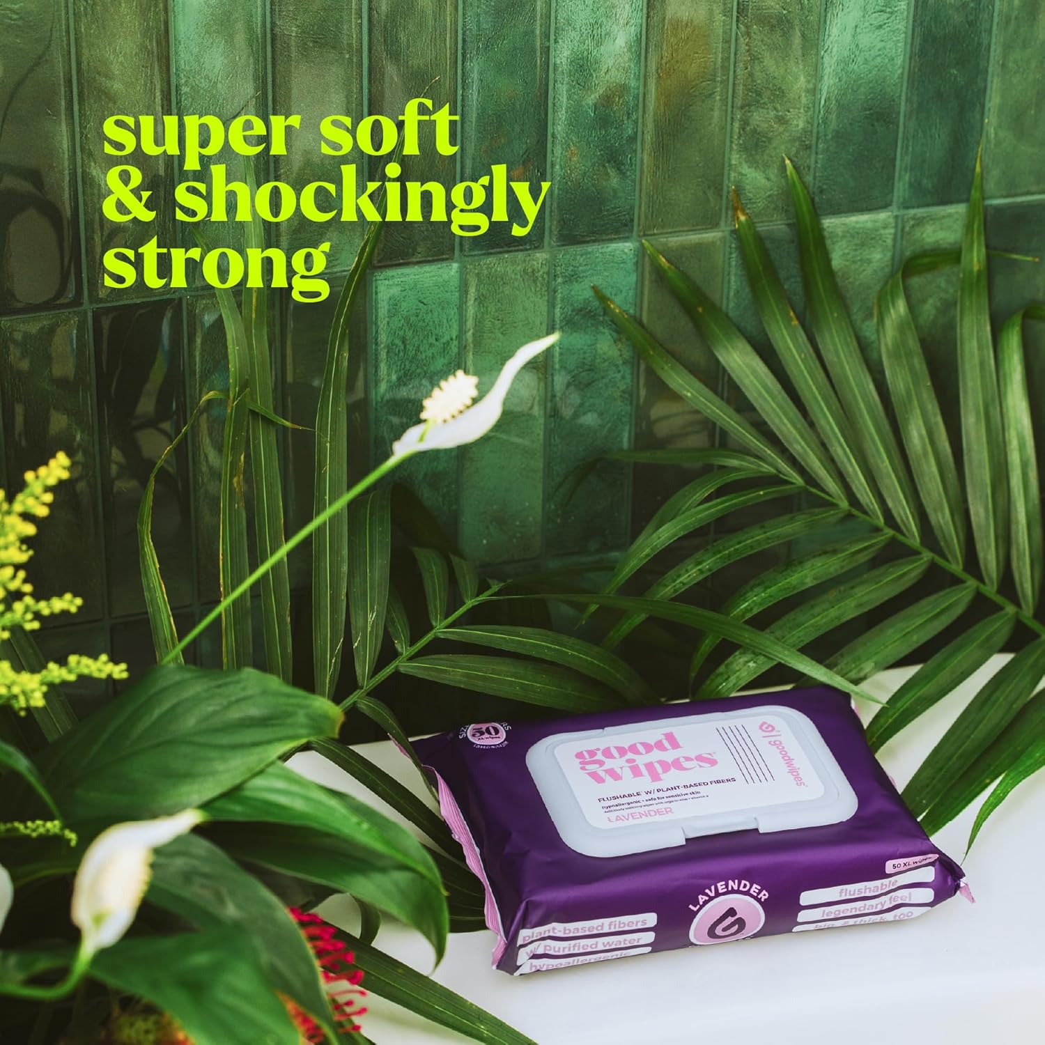 goodwipes Flushable Butt Wipes - Vitamin E & Aloe - Sewer & Septic Safe - Extra Large Adult Wet Wipes For Women & Men - Bathroom Essentials - Lavender, 318 Count (6 Packs + 1 Travel)