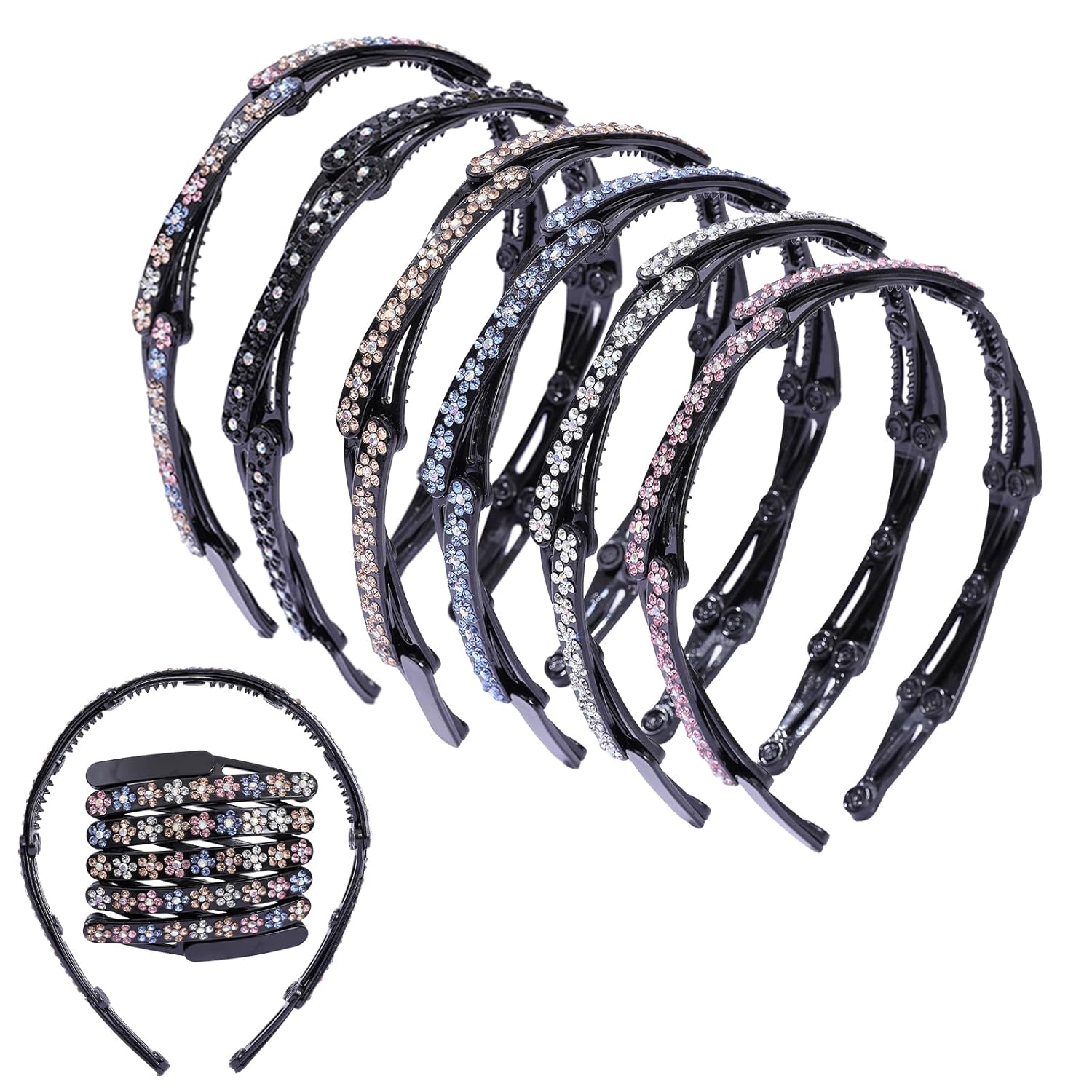 Sparkle Headbands with Foldable Design Glitter Rhinestone Flower Headband Non Slip Hairband with Teeth Bling Hair Hoop Hair Accessories for Women Girls with 6PCS