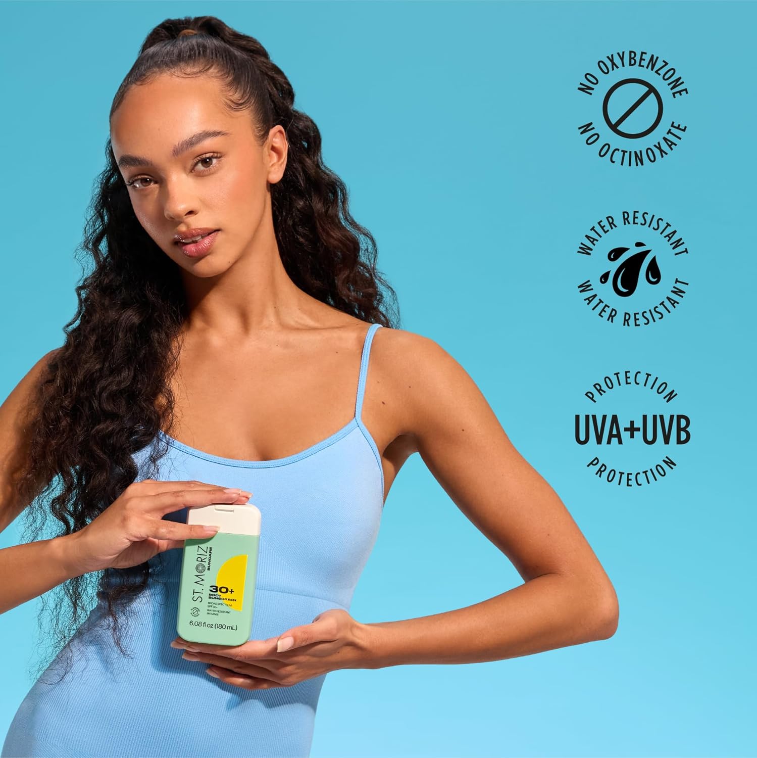 • SPF 30+ PROTECTION: St. Moriz Suncare SPF 30+ Body Sunscreen is a light-weight, fast-absorbing & non-greasy lotion which provides SPF 30+ UVA & UVB broad spectrum sun protection.