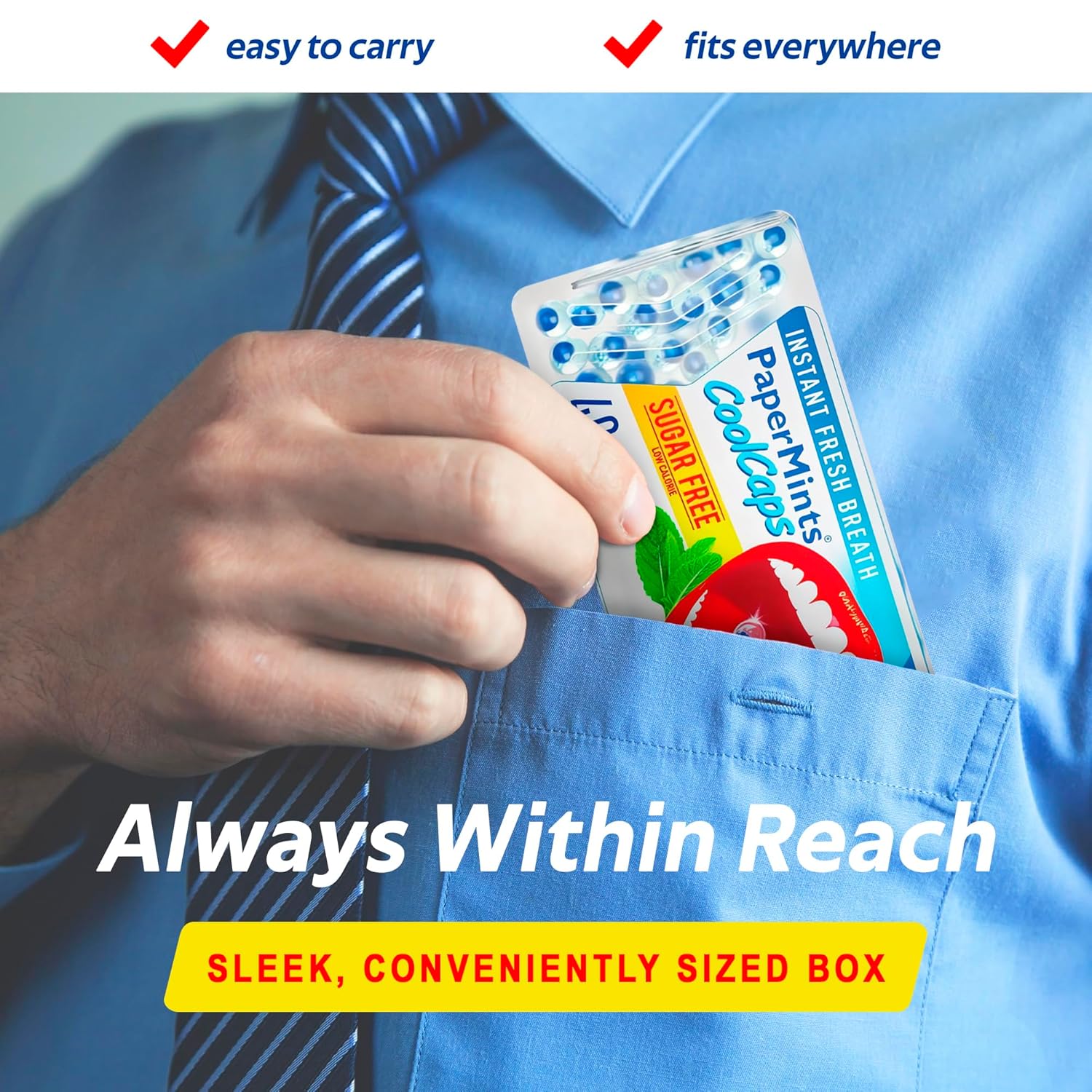 - LONG-LASTING FRESHNESS: PaperMints CoolCaps are your ideal solution for maintaining fresh breath and oral care longer. Our peppermint pearls are designed to keep your breath feeling fresh for longer. The breath booster capsule dissolves in your mouth with a burst of mint flavor while experiencing lasting freshness.