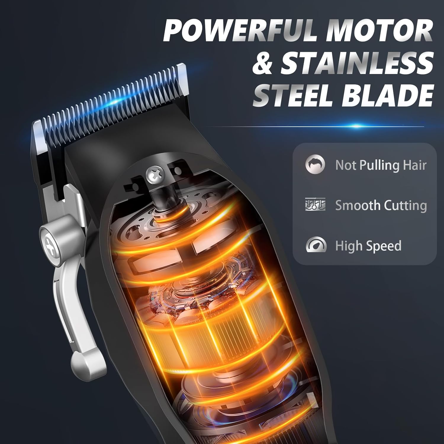 - Sharp, Safe Blades & Powerful Motor: The hair cutting kit equipped with self-sharpen close shave blade, trimmers for barbers can quickly cut off hair and beard without straining hair and irritating skin, suitable for all hair types at any age. R-shaped corner design can effectively prevent blade stabbing. Our fade clippers come with high speed (6200RPM, 6000RPM) durable motors, it can be smoothly shaved on thick hair. The operating noise less than 60 dB, suitable for kidsβ haircut, because of the low noise motor and safe R-edge blade.