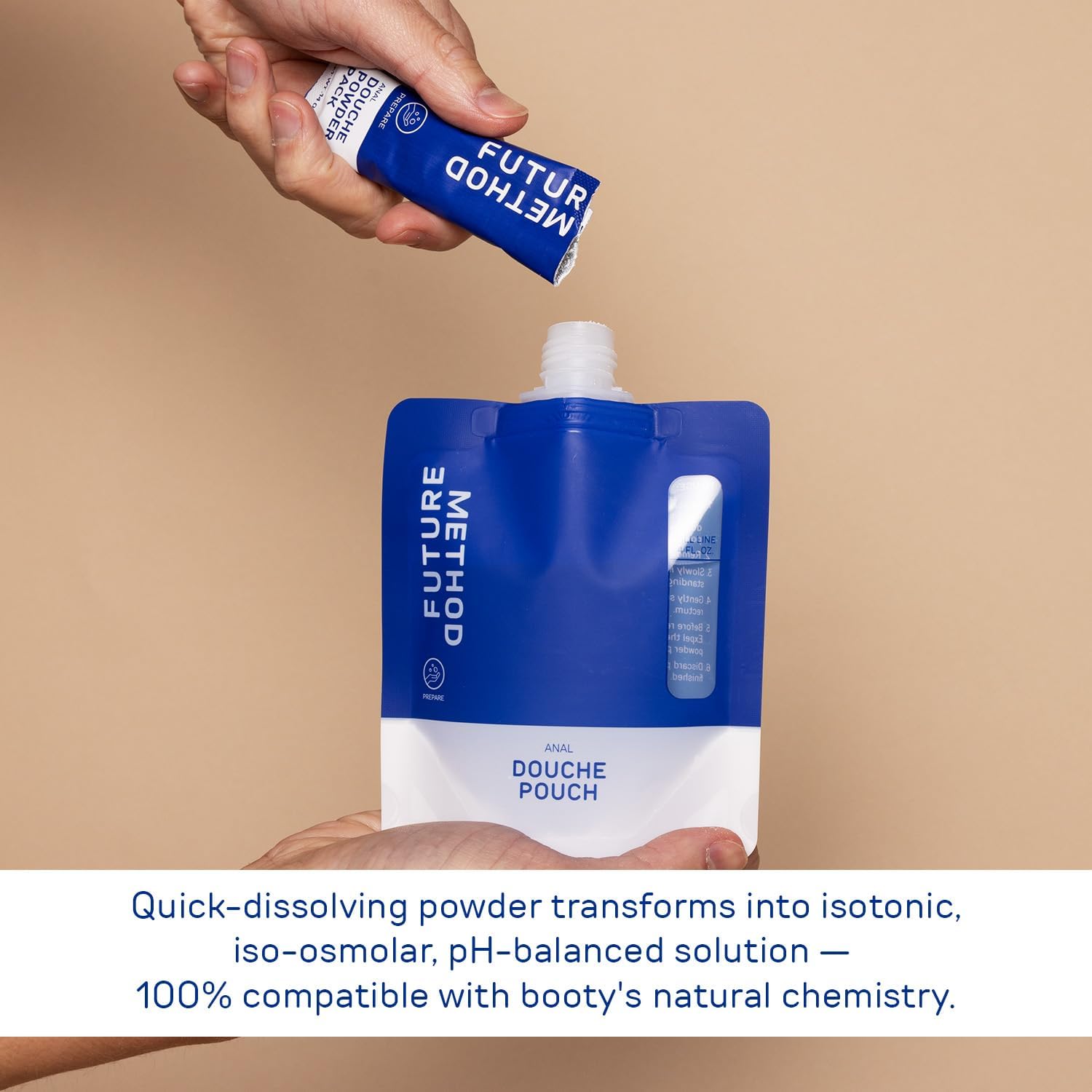 - We've Got Your Back(side): Shorten backdoor prep with a quick-dissolving powder compatible with your body’s chemistry. Each kit has everything you need: a mixing pouch and nozzle attachment for precise and effortless use.