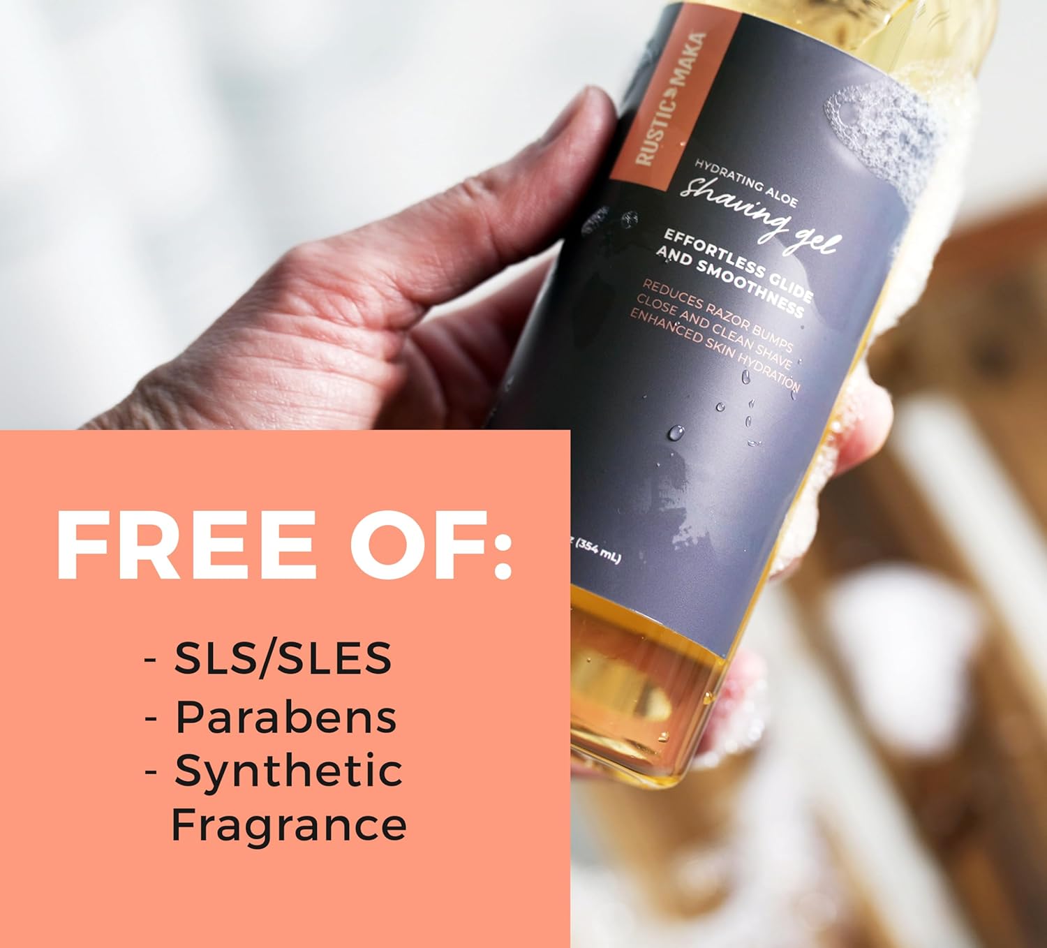 Rustic MAKA Shaving Gel for Women, Organic Aloe & Oils, Extra Sensitive Formula, Smooth Skin, Gel-to-Lather, Paraben-Free, Close and Clean Shave, Effortless Glide