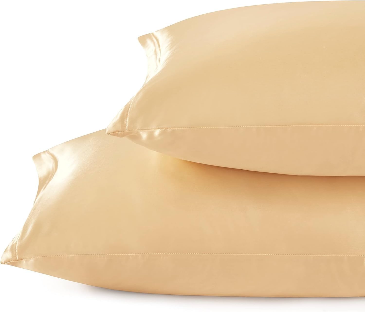 Juwenin Bedding,Super Soft and Luxury Silky Satin Pillowcase (Silky Satin Pillow Case for Hair) Set of 2 (Champagne, King (20'x40'))